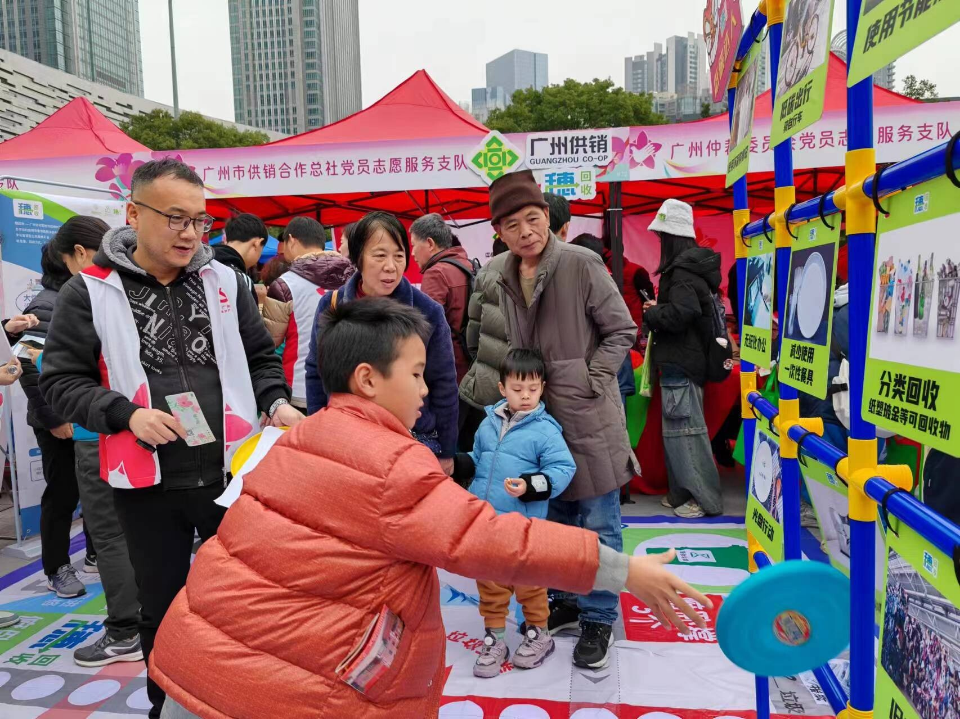 活动现场,志愿服务队向市民宣传分类投放和资源回收的有关知识,组织了垃圾分类桌面冰壶比赛、低碳飞盘、环保回收知识问答等游戏,派发宣传品560份,吸引了约600名市民与游客热情参与。活动通过有趣、互动、生活化的互动形式让市民轻松学习环保知识,提升绿色低碳意识。同时,市民还可通过扫码关注“穗回收”实现预约上门回收服务。目前,穗回收平台已拥有注册用户72万人,活动现场新增用户664人。