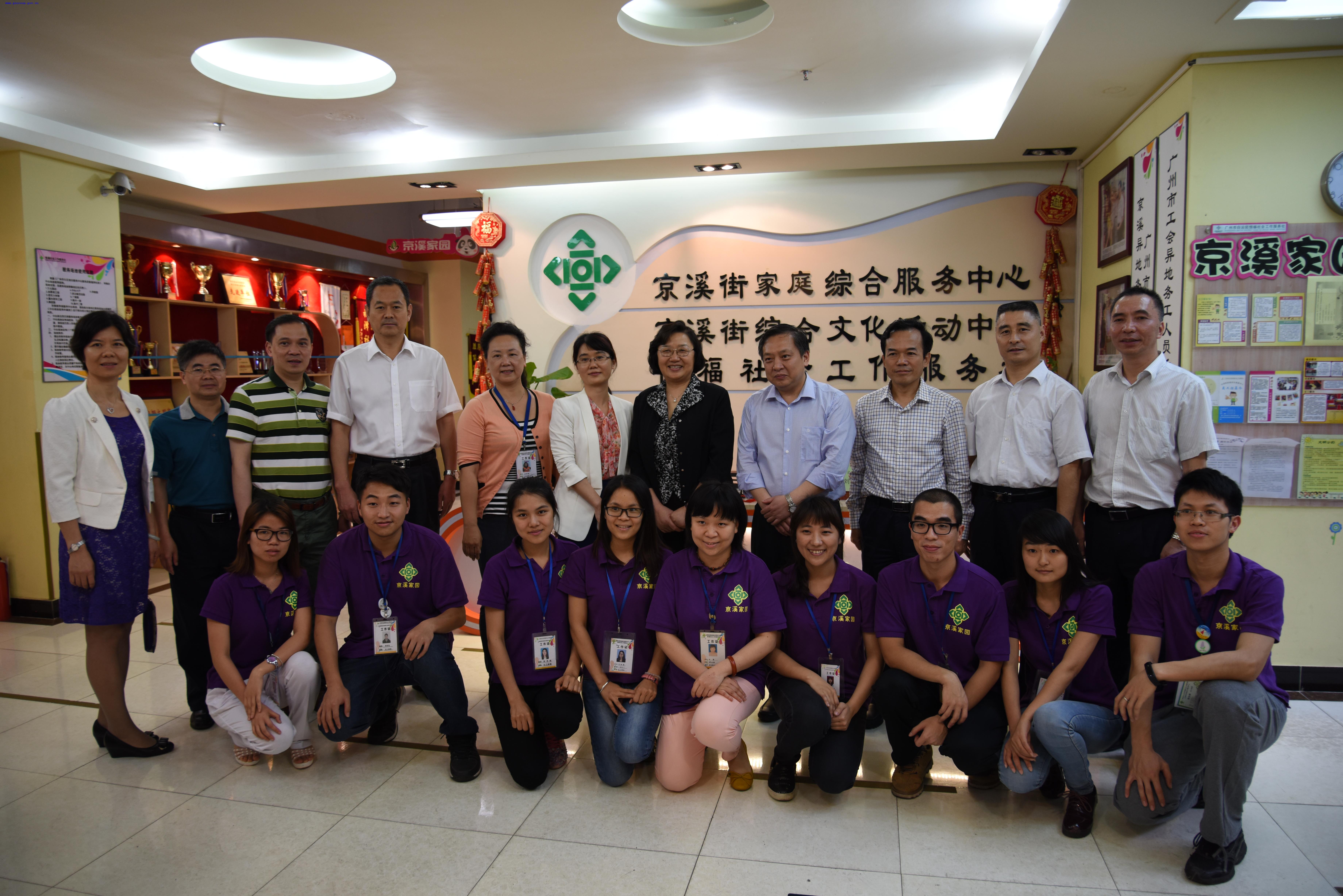 随后,诸葛彩华主任一行来到广州市白云区京溪街家庭综合服务中心,观看了中心运用专业社会工作手段,搭建社区长者康乐平台、青少年兴趣爱好培养平台、新广州人融入社区平台的方式方法,听取了中心关于开展专业化、大众化、多元化社区综合服务工作的情况。诸葛彩华主任充分肯定了广州市供销合作社主动延伸城市供销合作社服务职能,打造“恒福系”社会工作服务机构,构筑主体多元、功能完善、服务优质的社区综合服务取得的成效,并表示供销合作社积极探索开展社区综合服务,实现了让居民满意、令政府放心、使自己有为的局面。诸葛彩华主任要求,广州市供销合作社要继续强化服务“三农”的宗旨意识,结合城乡一体化进程,先行先试,不断创新为老百姓服务的手段,努力形成城市供销合作社改革发展的新模式。