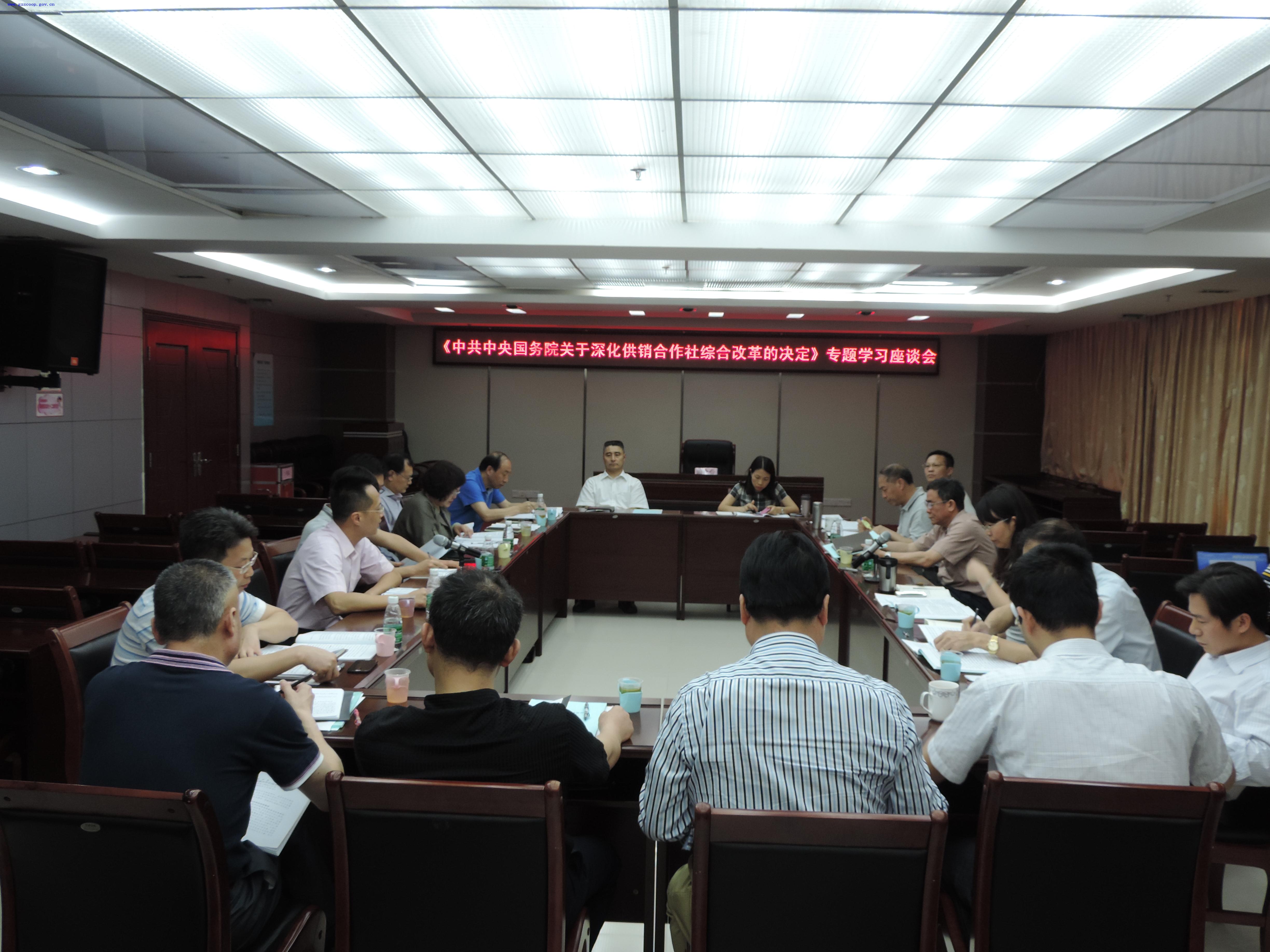 4月29日,市供销总社在1106会议中心召开了为期一天的《中共中央 国务院关于深化供销合作社综合改革的决定》(下称《决定》)专题学习座谈会,市供销总社领导、各区供销合作社领导班子、市供销总社各社有企业领导班子和市供销总社机关各部门(处室)负责人参加了会议。