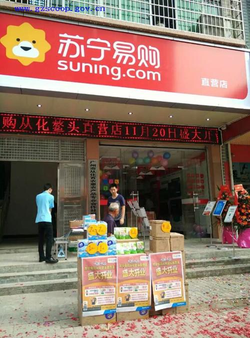 为拓宽我区农副产品流通渠道,今年从化区政府与苏宁易购签署协议开展电子商务合作。从化区鳌头供销社立足自身优势,依托社有物业与苏宁易购合作,建成从化首家镇级实体直营店,打造了为农服务综合平台。2015年11月20日,该直营店正式开业,位于鳌头供销社办公楼首层,面积80平方米。通过苏宁易购电商平台,直营店网上销售从化特色农特产品,同时又把质优价廉家用电器推荐给农户,实现了社有物业保值增值,促进了家电下乡、农特产品进城双向流通。