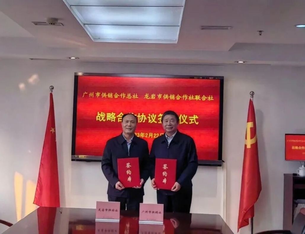 2月22日,广州市供销合作总社与龙岩市供销合作社联合社签订战略合作协议。广州市供销合作总社党组书记、理事会主任吴尚伟与龙岩市供销合作社联合社党组书记、理事会主任池启万分别代表两地供销社签约。