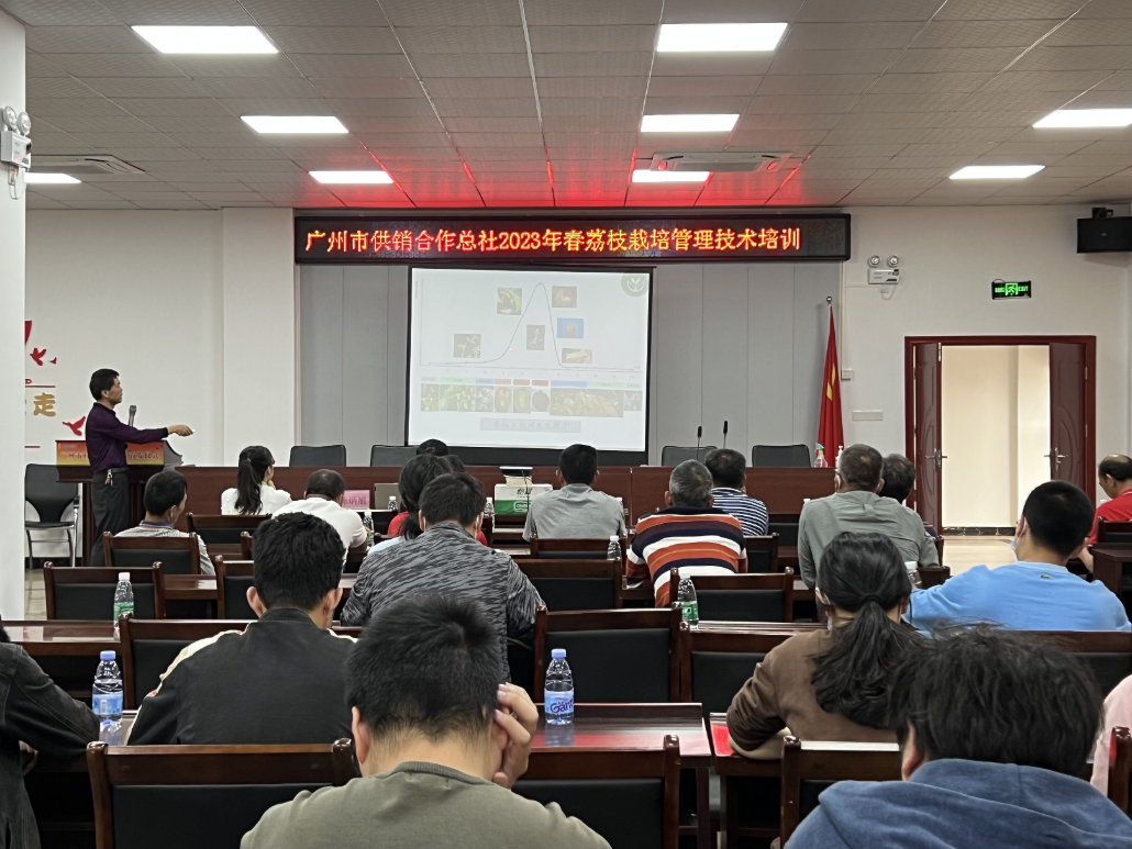 为加强对荔枝种植类农民专业合作社及荔枝果农的专业技术支持,提升荔枝果农标准化生产管理技术,实现助农工作提质增效,促进荔枝种植业高质量发展,3月21日上午,市供销合作总社在增城区增江街四丰村举办“荔枝栽培管理技术培训”,来自从化、白云、增城等涉农区的荔枝种植类专业合作社、家庭农场、荔枝种植户等近40人参加了培训。