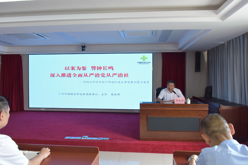 根据省委、市委工作部署和省社全面从严治党从严治社工作安排,结合我社纪律教育学习月活动安排,9月20日下午,市供销总社党组书记、主任吴尚伟同志给机关全体党员干部、社有企业负责人进行党风廉政教育授课,重点剖析近年来供销社系统发生的违纪违法典型案例,利用领域内的身边人、身边事进行针对性警示教育,进一步强化党员干部的纪法观念、纪律意识和底线思维,进一步推动全面从严治党从严治社和党风廉政建设各项工作落地见效。