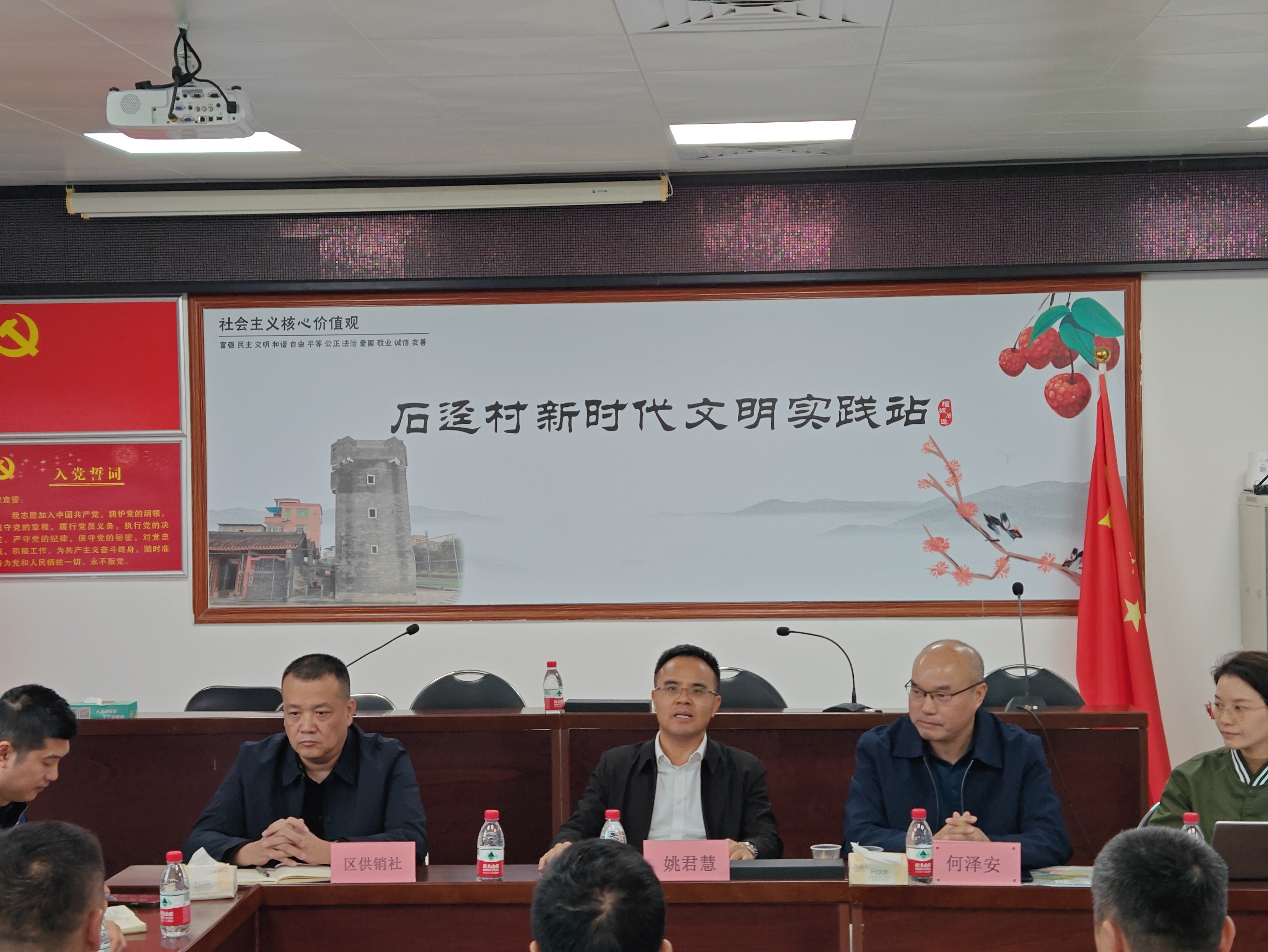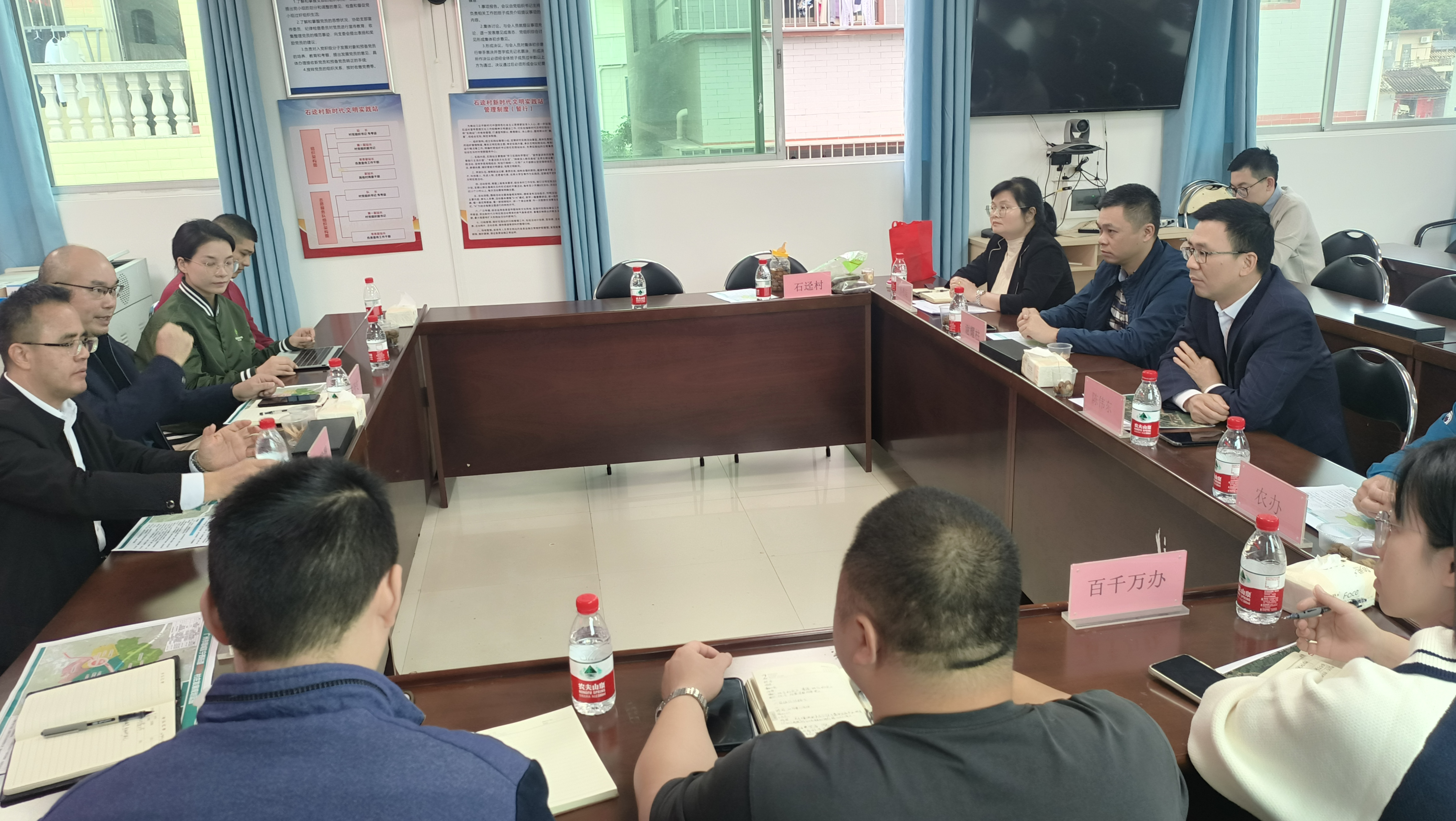 调研组一行听取了石迳村关于“百千万工程”典型村建设进展情况、村集体经济“3050”完成情况及其后续发展规划的介绍,实地考察了村庄风貌、人居环境及乡村治理成效。随后,围绕发挥石迳村资源禀赋和供销社为农服务组织体系优势,拓宽帮扶领域、整合帮扶资源、创新帮扶机制,探索新型农村集体经济发展壮大的新路径进行座谈交流。宁西街、石迳村委对增城区供销社提出的“社村”合作框架和帮扶模式表示肯定和支持,对推进石迳村下一步发展规划和实施路径达成共识。