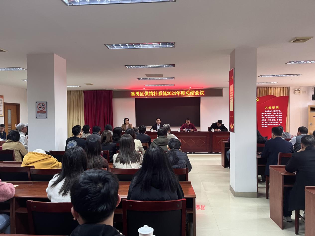 2025年1月23日下午,番禺区供销联社召开2024年度全区供销社系统工作总结会议。区供销联社班子成员,系统各基层单位正、副职领导、先进个人、机关全体同志共50余人参加会议。会议总结了2024年主要工作情况、取得的成绩及存在的不足,客观分析了当前供销社发展面临的新形势,谋划部署2025年工作计划及目标,通报表扬了一批2024年度区供销社系统工作考核先进个人。