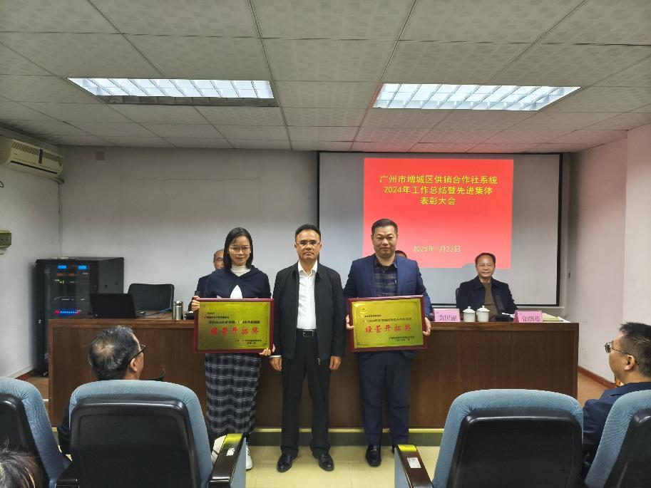 会议宣读了《广州市增城区供销合作总社关于表彰2024年度增城区供销合作社系统综合业绩考核先进单位和经营开拓奖的决定》,对2024年度增城区供销合作社系统涌现出的3个综合业绩考核先进单位和2个经营开拓奖进行表彰,举行授牌仪式。会议希望全系统各企业以先进为榜样,振奋精神,主动作为、开拓创新,以更加饱满的政治热情和更加扎实的工作作风,在服务“三农”工作中再创佳绩。