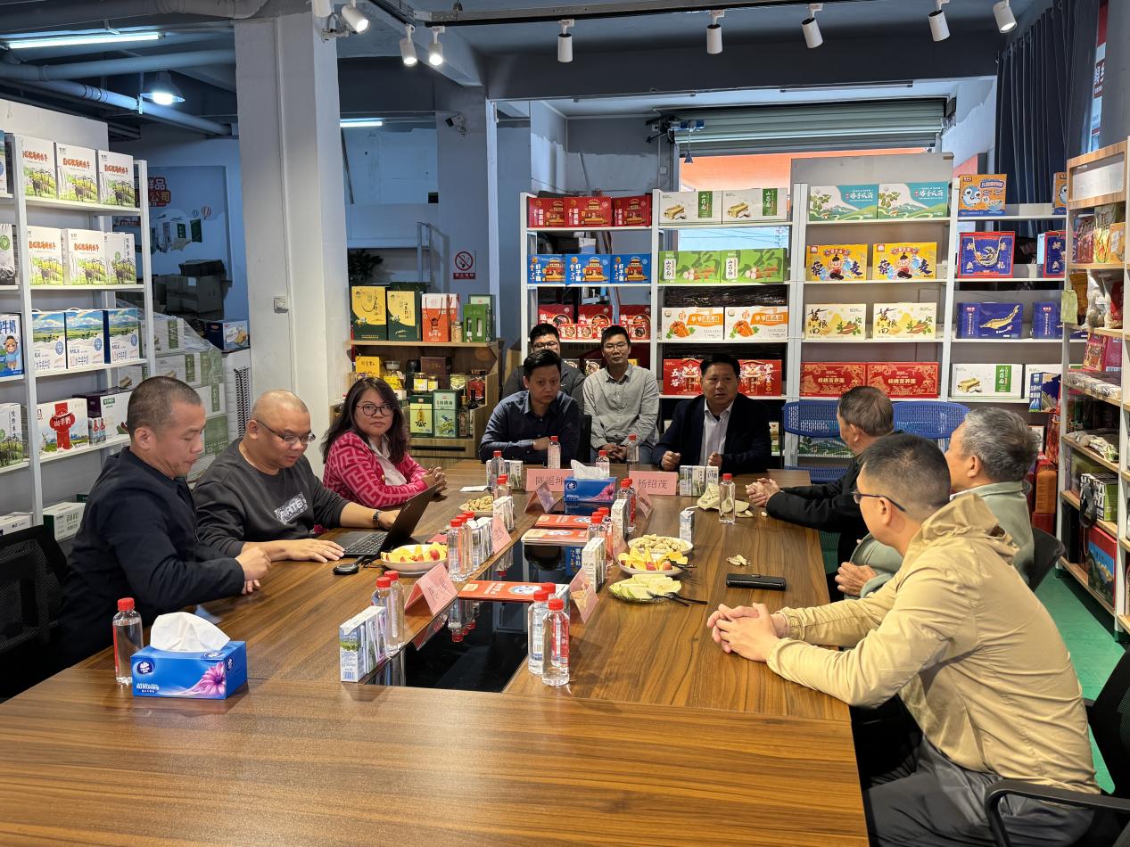考察组一行实地走访悦农合作社产品展厅、办公区、仓库等地,重点了解来自福建上杭、贵州毕节、梅州五华等对口合作(帮扶)地区的产品推广情况。考察组一行对古田缘饮用水、通贤乌兔汤等特色产品的品质与品牌建设情况给予肯定。