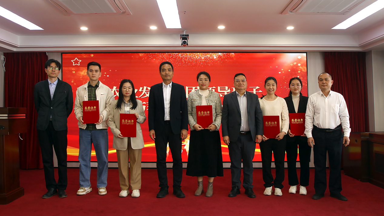 农业发展集团领导班子为五名在2024年工作中表现突出的优秀员工颁发荣誉证书,以表彰他们在各自岗位上的突出贡献。此次表彰不仅是对先进个人的肯定,更是对全体员工的鼓励,激发大家以更加饱满的热情投入到2025年的工作中。