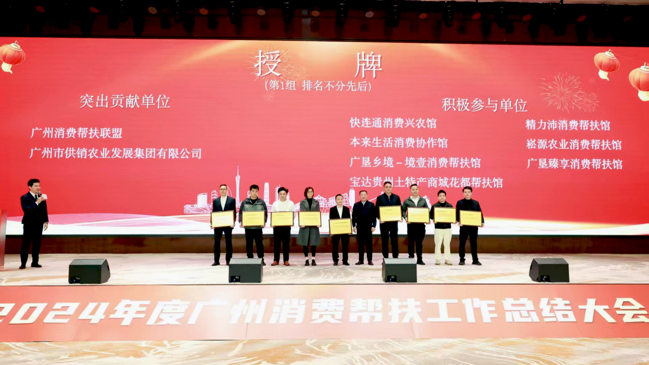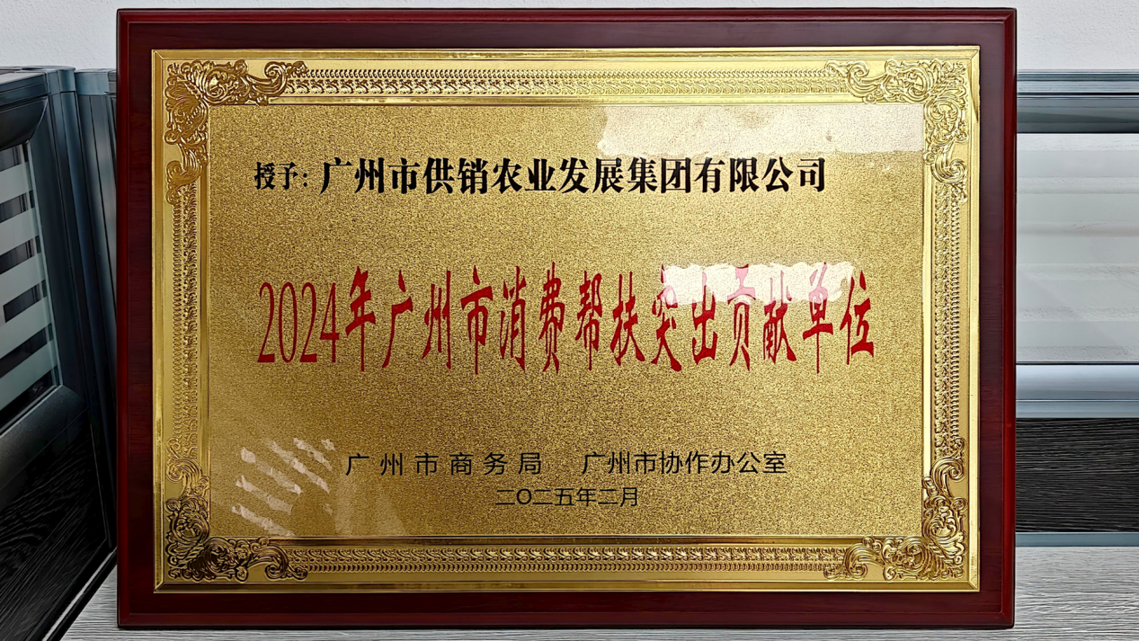 2024年2月24日,广州市消费帮扶工作总结大会在广州国际医药港举行。会议总结了2024年广州消费帮扶工作情况,表彰了作出突出贡献的优秀单位、企业,并对广州市2025年消费帮扶工作高质量发展进行了动员部署,提出了具体要求。在众多获奖单位中,广州供销凭借在推动消费帮扶、促进农产品销售等方面的卓越表现,荣获“2024年广州市消费帮扶突出贡献单位”奖。