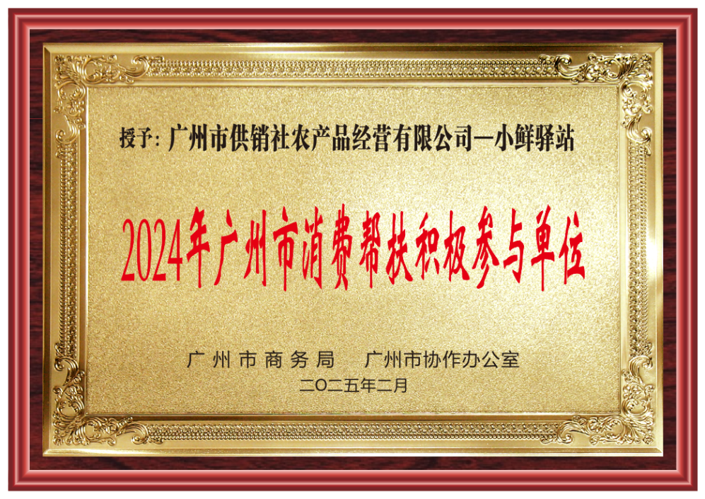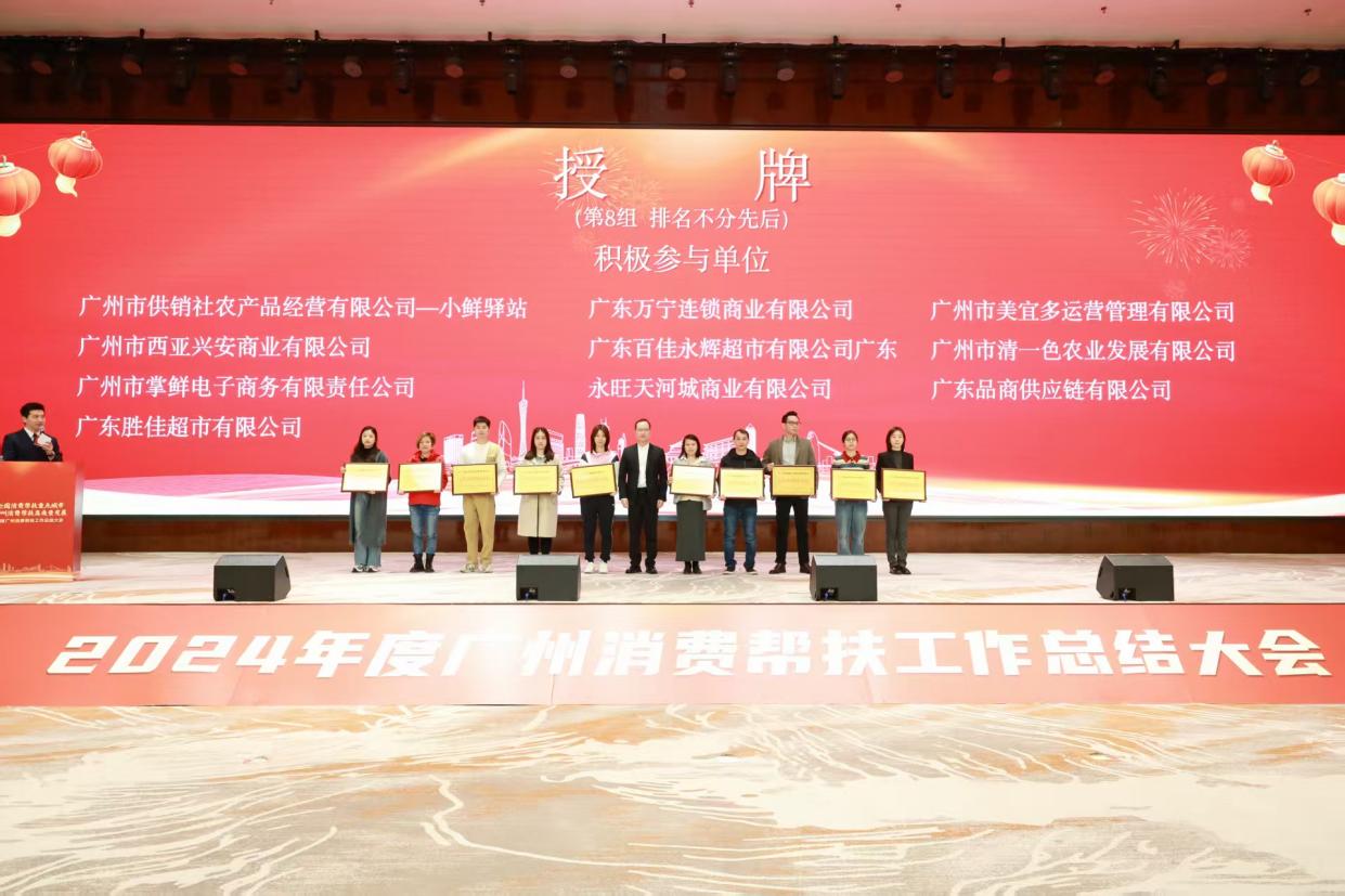 2月24日上午,在广州市商务局、广州市总工会、广州市协作办公室联合主办的广州市2024年度消费帮扶工作总结大会上,农产品公司获“2024年广州市消费帮扶积极参与单位”荣誉称号。
