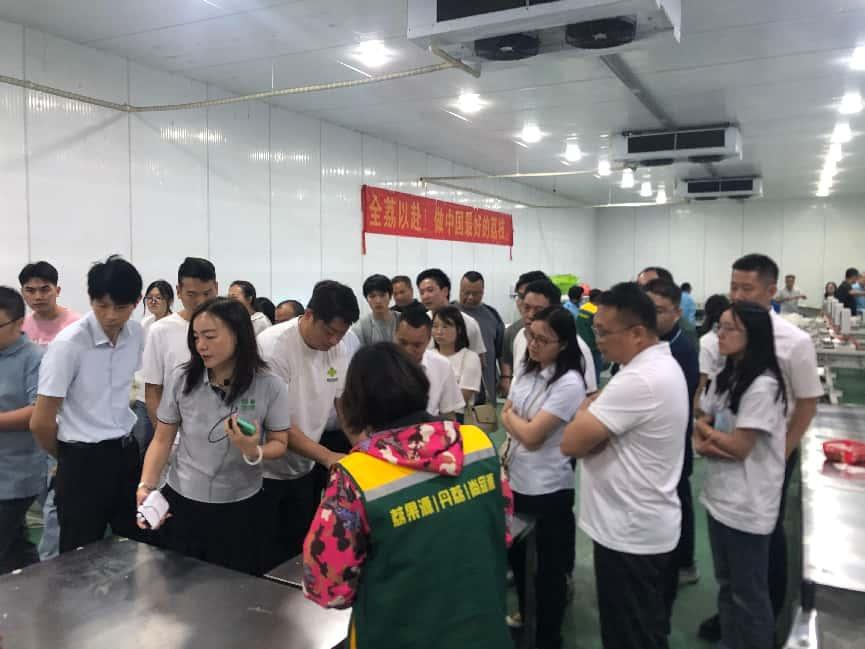 在丹荔合作社荔枝种植基地,企业代表深入荔枝种植园区,实地考察荔枝标准化生产与品质管控体系。技术人员现场讲解品种选育、绿色种植、采摘标准等关键环节,全方位展示增城荔枝标准化生产模式。随后,企业代表们走进现代化冷库打包车间,观摩荔枝从分拣、预冷到包装的冷链操作流程,直观感受增城荔枝从产地到市场的品质保障体系。在品牌解读环节,丹荔合作社负责人系统介绍2025年荔枝产销规划,重点分析增城荔枝的独特品种优势、市场竞争力和产品市场营销策略,进一步阐释增城荔枝的品牌价值内涵。