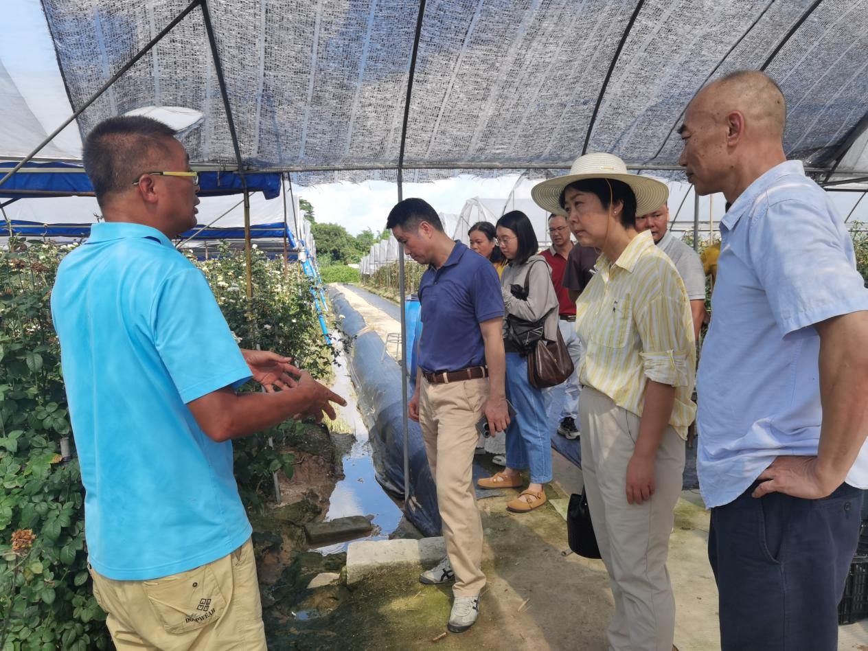活动组织学员们到狮岭镇旗岭村玫瑰种植基地开展研学。该基地种植了上百亩玫瑰花,基地负责人李明仲细致讲解了玫瑰“耕、种、管、收、销”全流程技术要点,让学员直观体验农技服务,增强种植技能。