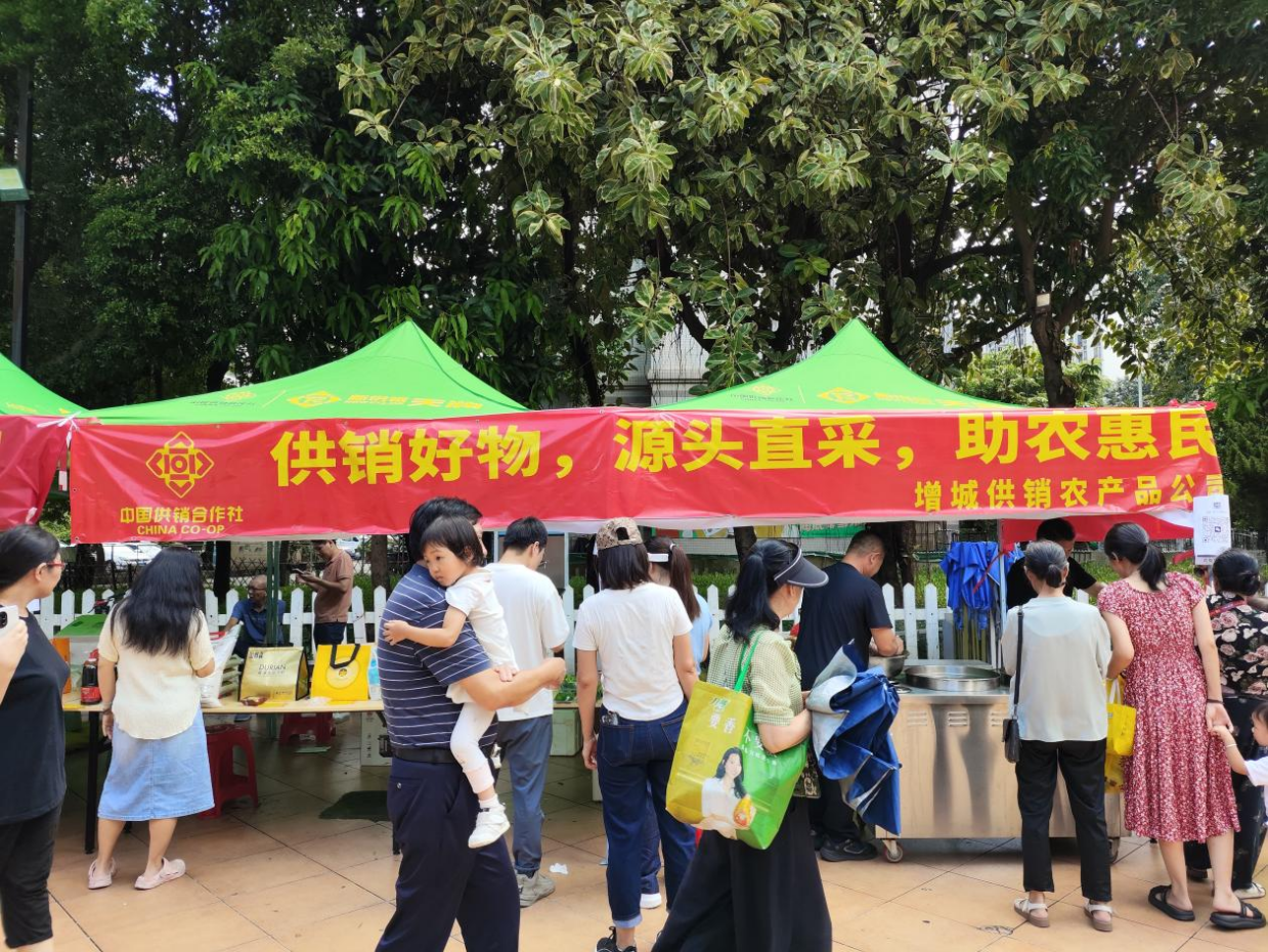 为深入贯彻落实“百千万工程”部署要求,推动消费帮扶与社区惠民深度融合,9月26日至27日,广州增供农产品有限公司牵头,联合广东省供销社新天润公司、广州市供销社农产品公司、增城区直播电商协会以及新塘、宁西、石滩、增江等镇街供销社,在永宁街凤馨苑社区街心公园举办“家门口好物,情暖邻里庆中秋”暨供销联动“助力百千万·消费帮扶”五进活动。