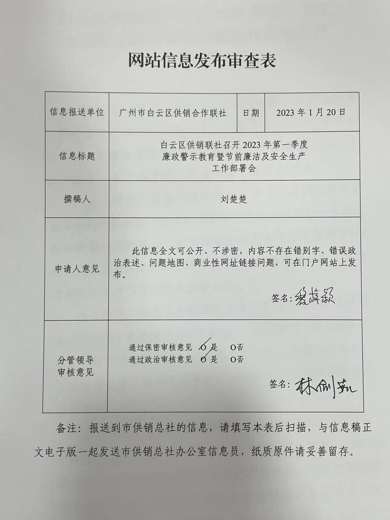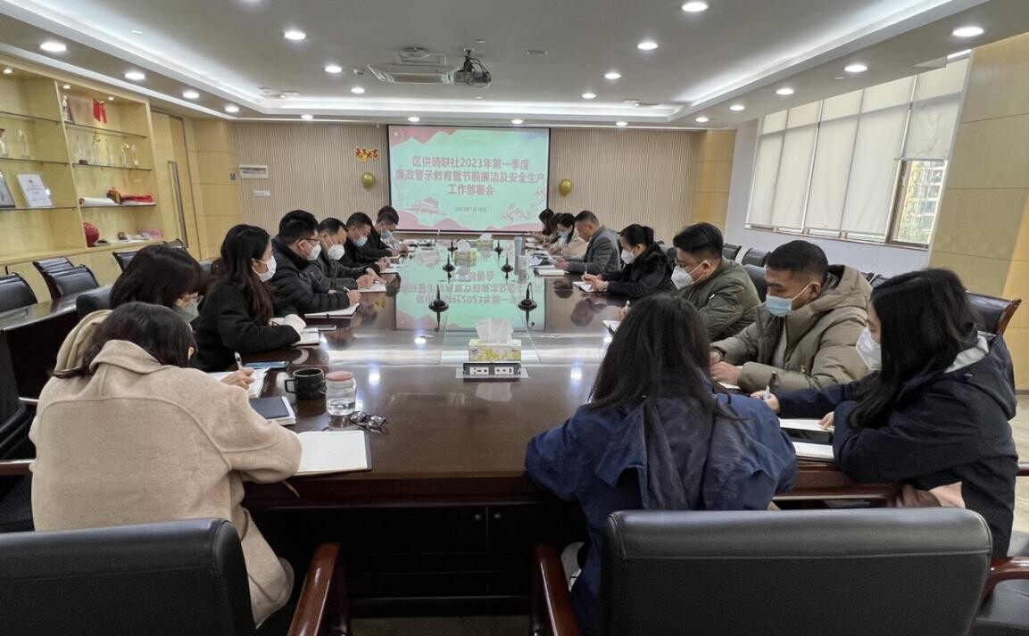 1月18日,白云区供销联社召开2023年第一季度廉政警示教育暨节前廉洁及安全生产工作部署会,区供销联社党组书记、理事会主任蔡文炎主持会议,全体机关人员、总公司班子、各支部书记、纪律委员、联络员参加。