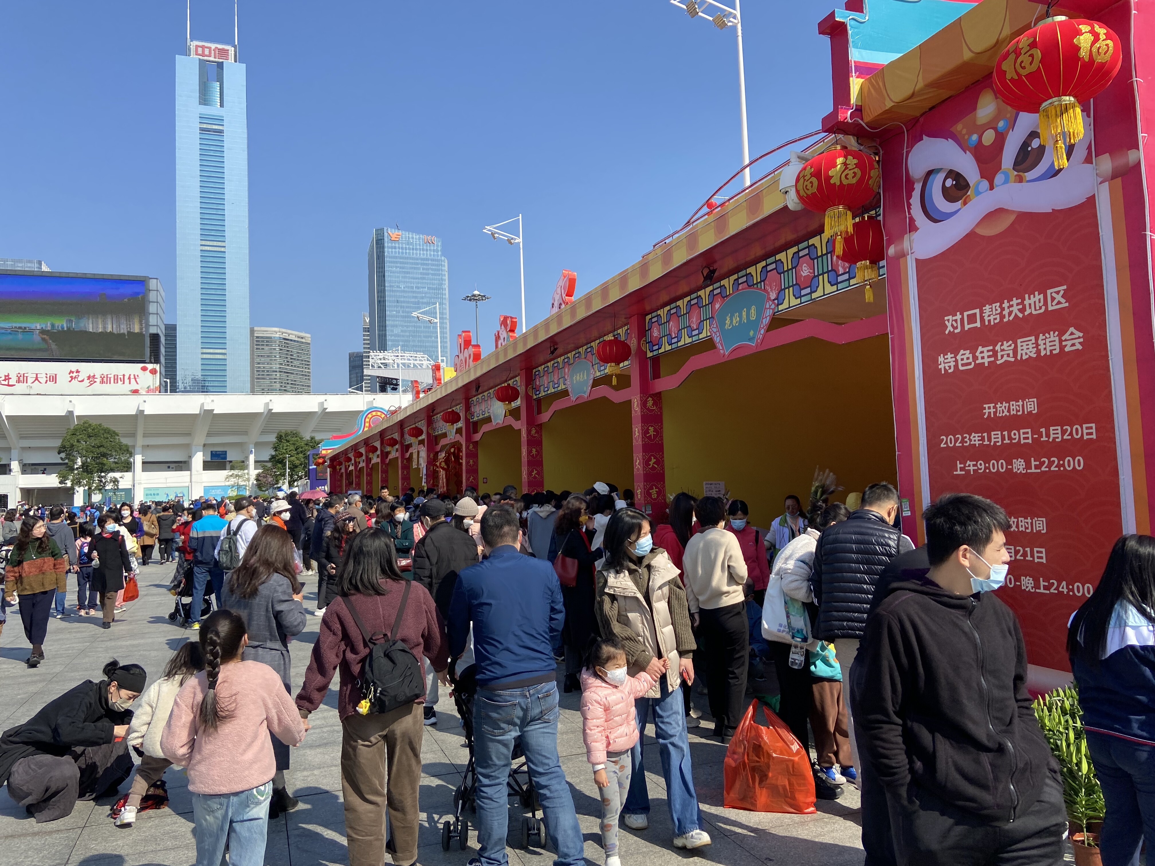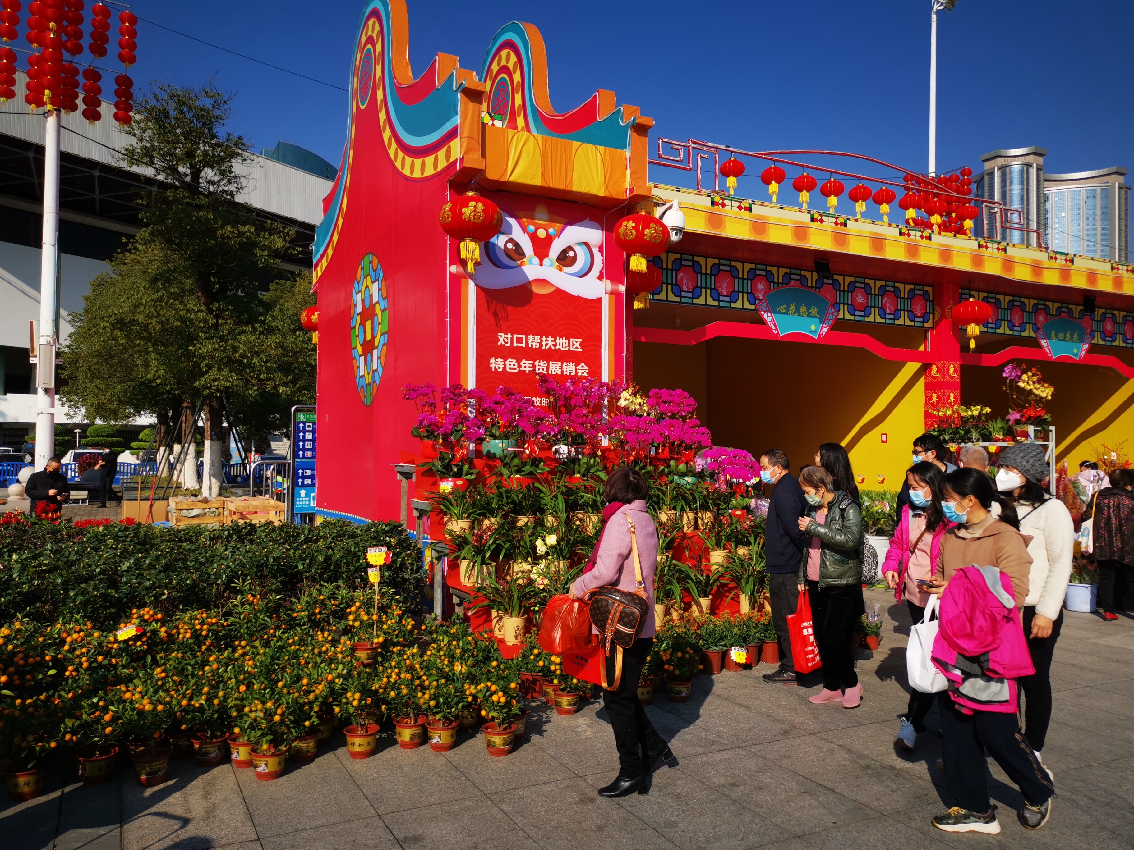 此次花市中,天河区供销联社承担了“对口帮扶地区特色年货展销会”的布置组织工作。免费提供给东西部龙头企业的20个摊位一字排开,集买花、赏花、买年货于一体,将东西部优质农特产品集中展现在广州市民面前,打造了“可观赏、可试吃、可购买”的综合平台,让今年的体育中心花市更有特色,让逛花市的广州人沉浸式感受最传统的岭南特色年味的同时,共同参与消费帮扶,助力乡村振兴。虽还未正式开市,便已经吸引了不少市民驻足,1月18日当天销售额就近30万元,推广成效明显。