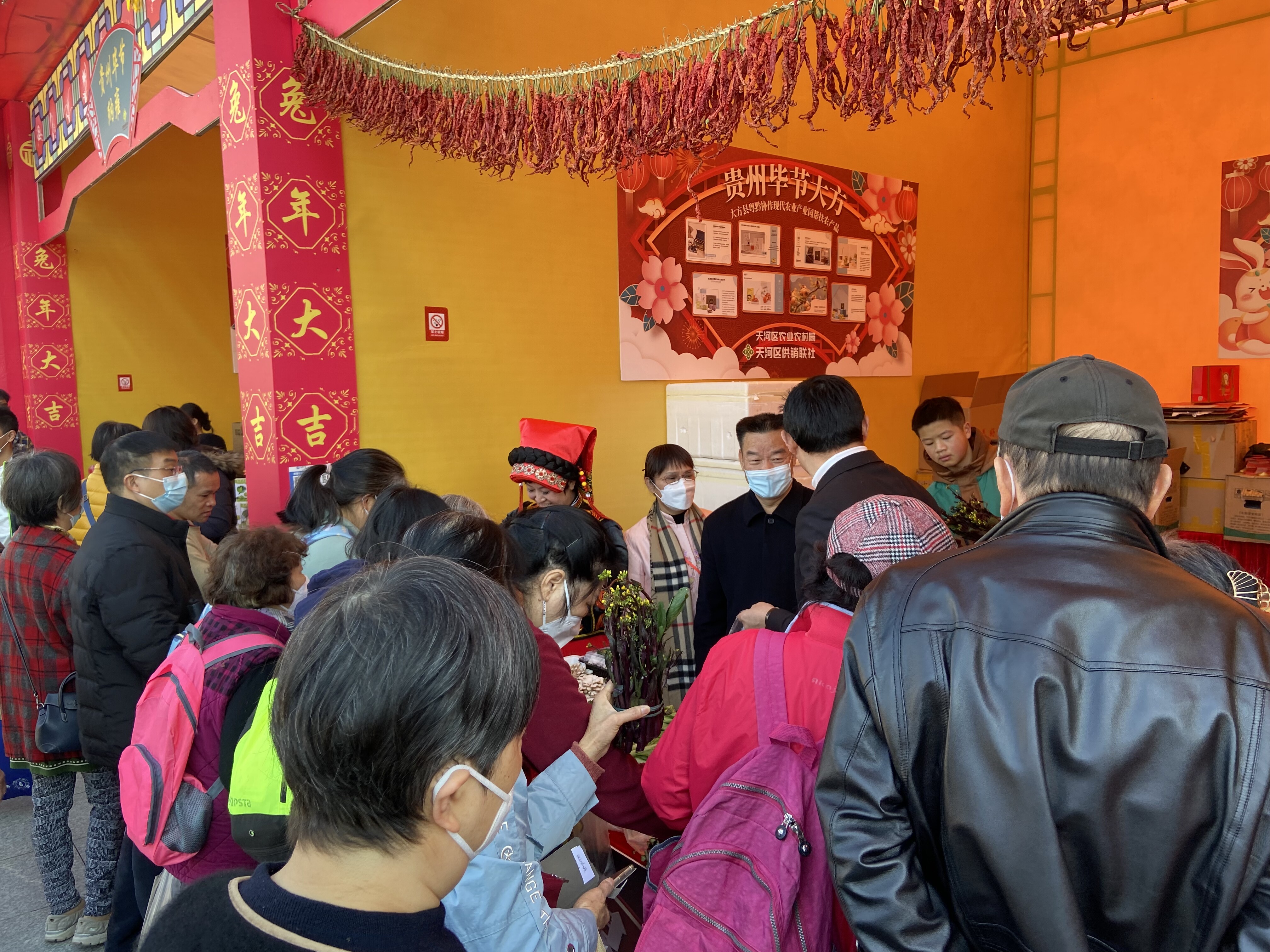 看!红灯笼、红对联、金漆字,红红火火的春节装饰品挂起来了,蝴蝶兰、腊梅等代表春天气息的花朵摆出来了,贵州纳雍滚山鸡、大方新鲜天麻新疆核桃干果、云南七彩花生、连州丰阳马蹄端上来了……这是天河区供销社带着东西部农特产品的龙头企业,带着年花年货,一起来给广州市民拜年啦!