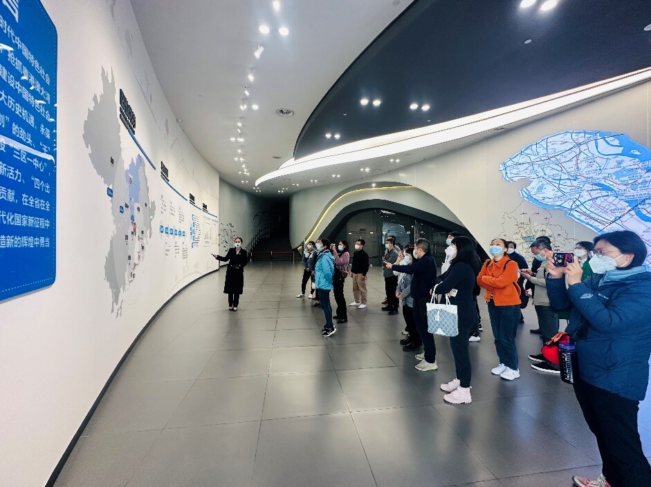 在明珠湾规划展厅,公司党支部书记周彬带领党员一起学习了习近平总书记关于“坚定不移走高质量发展之路”的重要论述,重温了《南沙方案》,感受湾区建设加速度。在参观环节,全体党员首先来到了极具现代感的明珠湾展览馆,展览馆充分再现了南沙新区和广东自贸试验区以及整个明珠湾区开发建设的经验和形象。在这里,大家通过宣传影片、沙盘模型、场景模拟等多种方式,更深入地了解了南沙的发展蓝图、城市建设规划等情况,深切体会到了南沙近年来融入粤港澳大湾区建设的发展变化,看见了南沙的过去,见证了南沙的今天,遇见了南沙的未来。
