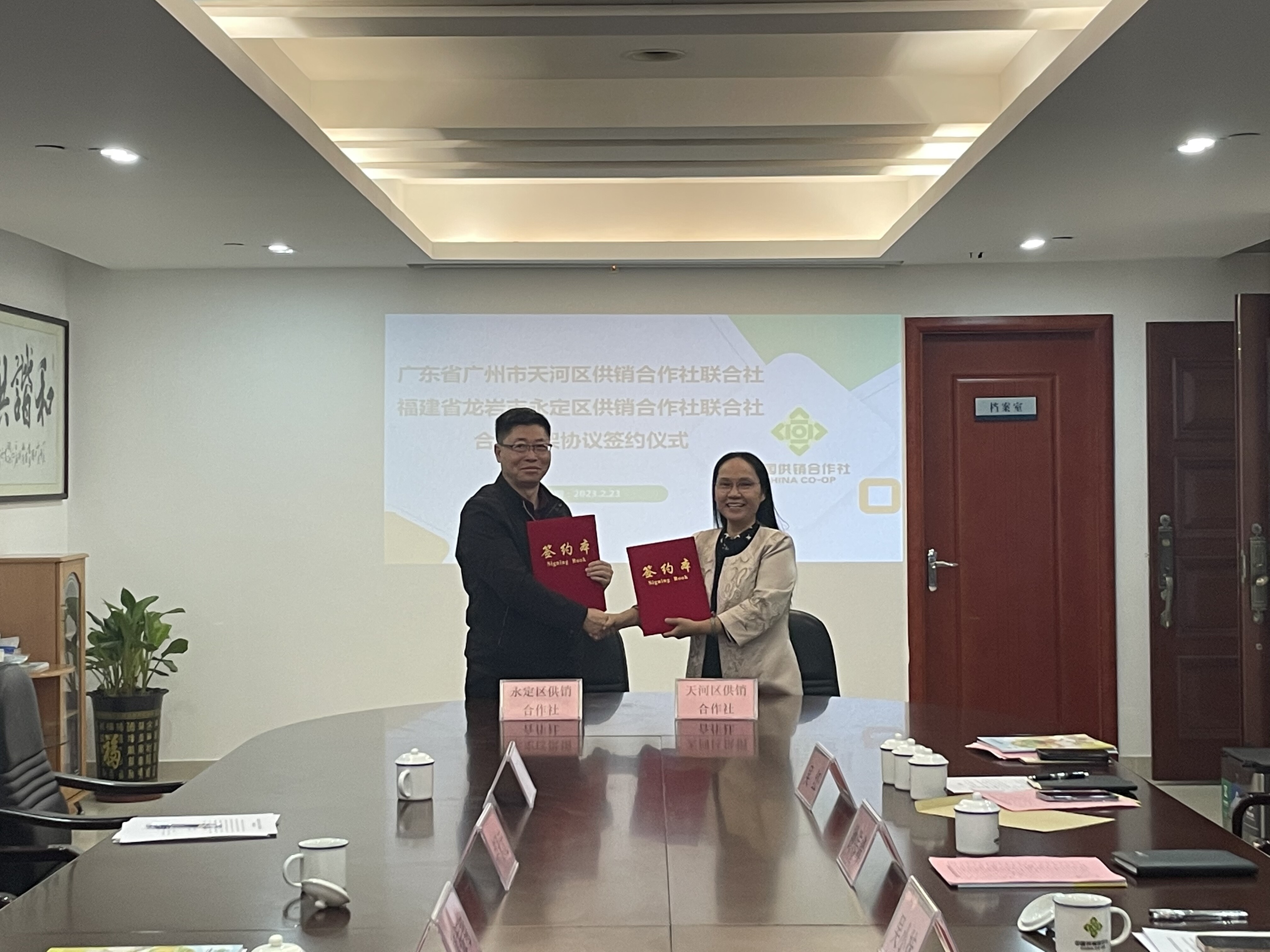 2月23日,福建省龙岩市永定区供销联社理事会主任魏振翔一行4人赶赴天河区供销联社学习交流,天河区供销联社理事会主任吴小妹陪同。双方就业务工作进行了深入探讨,并签署了战略合作协议。