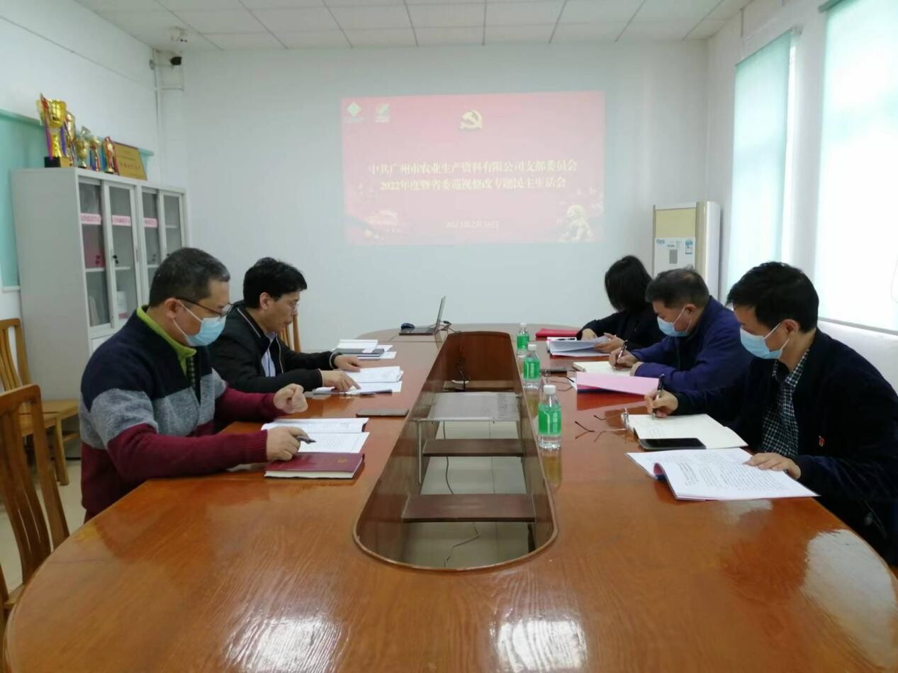 根据省委、市委、市供销总社机关党委工作安排,近日,广州市农业生产资料有限公司党支部召开2022年度暨省委巡视整改专题民主生活会。会议紧紧围绕民主生活会主题,结合工作实际,深入进行党性分析,深刻挖掘思想根源,认真检视问题不足,严肃开展批评与自我批评,始终在政治立场、政治方向、政治原则、政治道路上同以习近平同志为核心的党中央保持高度一致。市农资公司党支部书记、总经理张斌主持会议。市供销总社民主生活会督导组带队到会指导。