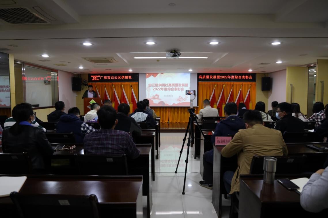 为调动白云供销全体员工的积极性,立典型、树新风,凝心聚力推动白云供销事业再上新台阶,近日,白云区供销社组织召开高质量发展暨2022年度综合表彰会。区联社班子成员、机关全体人员、社属企业中层副职以上人员、受表彰人员和团队代表共38人参加现场会议。社属企业员工约100人通过线上直播同步参会。会议由区供销总公司党总支书记、总经理吕敏主持,会上对社属企业2个优秀团队和14名优秀员工进行通报表彰。