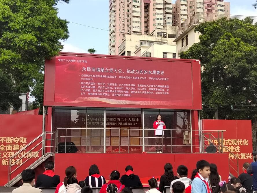 为深入学习贯彻党的二十大精神,厚植爱党爱国的家国情怀,筑牢党、团、队一体化育人链条,2月25日,由越秀区白云街党工委、白云街道办事处、白云街新时代文明实践所、团越秀区委、越秀区教育局、越秀区少工委、广州日报报业集团举办的“越秀区白云街推动党的二十大精神“七进”活动暨新时代文明实践宣讲学习实践大篷车活动”在越秀区港湾广场开展。