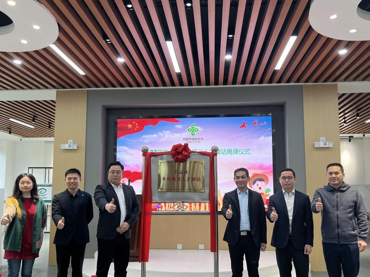 为促进各类人才积极投身乡村建设,发挥人才在乡村振兴中的示范引领和骨干带动作用,3月27日,白云区乡村振兴人才驿站在白云区助农服务综合平台正式揭牌落成,标志着白云区人才服务阵地建设再上新台阶。人才驿站正式挂牌后,这里将成为白云区乡村振兴人才的聚集高地、展示窗口、培训基地和服务平台。区委组织部副部长黄钜泉,区人社局党组成员、副局长宋维功,区乡村振兴局常务副局长洪焕然,区供销联社党组成员、监事会主任文志军,钟落潭镇党委委员、武装部部长曾钰山,钟落潭镇党委委员、组织委员兼宣传委员、统战委员雷皎等出席,首批驿站合作共建服务单位以及首批进站专家库代表等参加揭牌仪式。