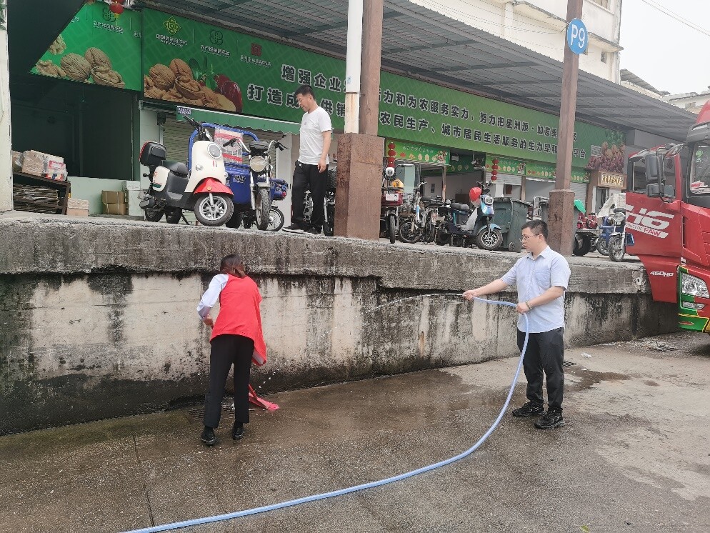 会议结束后,星洲源团支部组织开展爱国卫生环境治理专题团日活动,来自各部门的9名团员青年各显身手,持铲努力清除顽固小广告,持水管冲洗市场淤积泥沙地面,重新规整电动车、三轮车摆放,进行仓库灭鼠行动,充分展现了青年力量的蓬勃朝气。