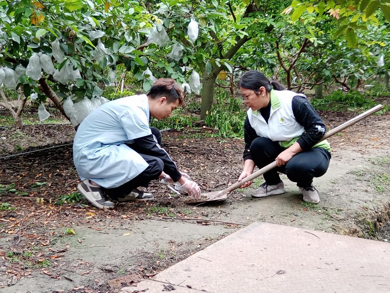 为改善连日阴雨天气造成果园土壤养分流失,水果糖度下降的情况,庄稼医生萧卓铭穿梭于果树林间,仔细测量土壤酸碱度和果实甜度,查看果树长势,为种植户开出“独家”植保处方:“大雨后、小雨前要及时施肥保障土壤肥力。雨后容易染病虫害,可以在病虫害初期使用代森猛锌、甲基硫菌灵等杀菌剂进行防治,同时喷洒芸苔素内脂之类的保果剂,补充含氨基酸水溶肥料,减少落果,增加产量……”。
