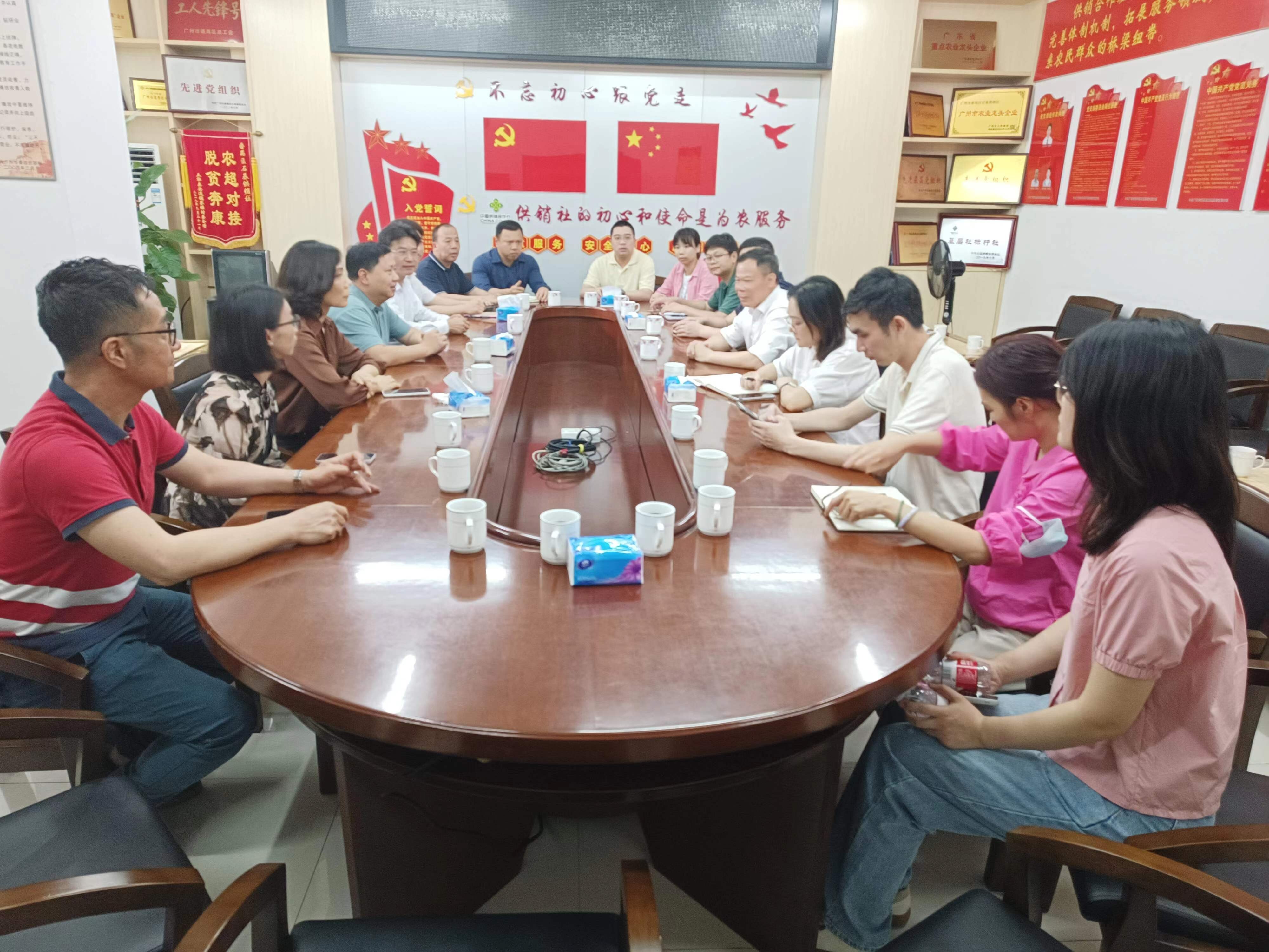 4月20日下午,白云区供销合作联社党组书记、理事会主任蔡文炎一行12人到番禺区供销联社开展业务工作调研。主要考察学习农产品购销、流通网络建设、直供配送体系的经验和做法。番禺区供销联社党组书记、理事会主任杨绍茂,区供销联社党组成员、监事会主任蒋智芬,石基供销社负责人及相关科室负责人等参加了调研。