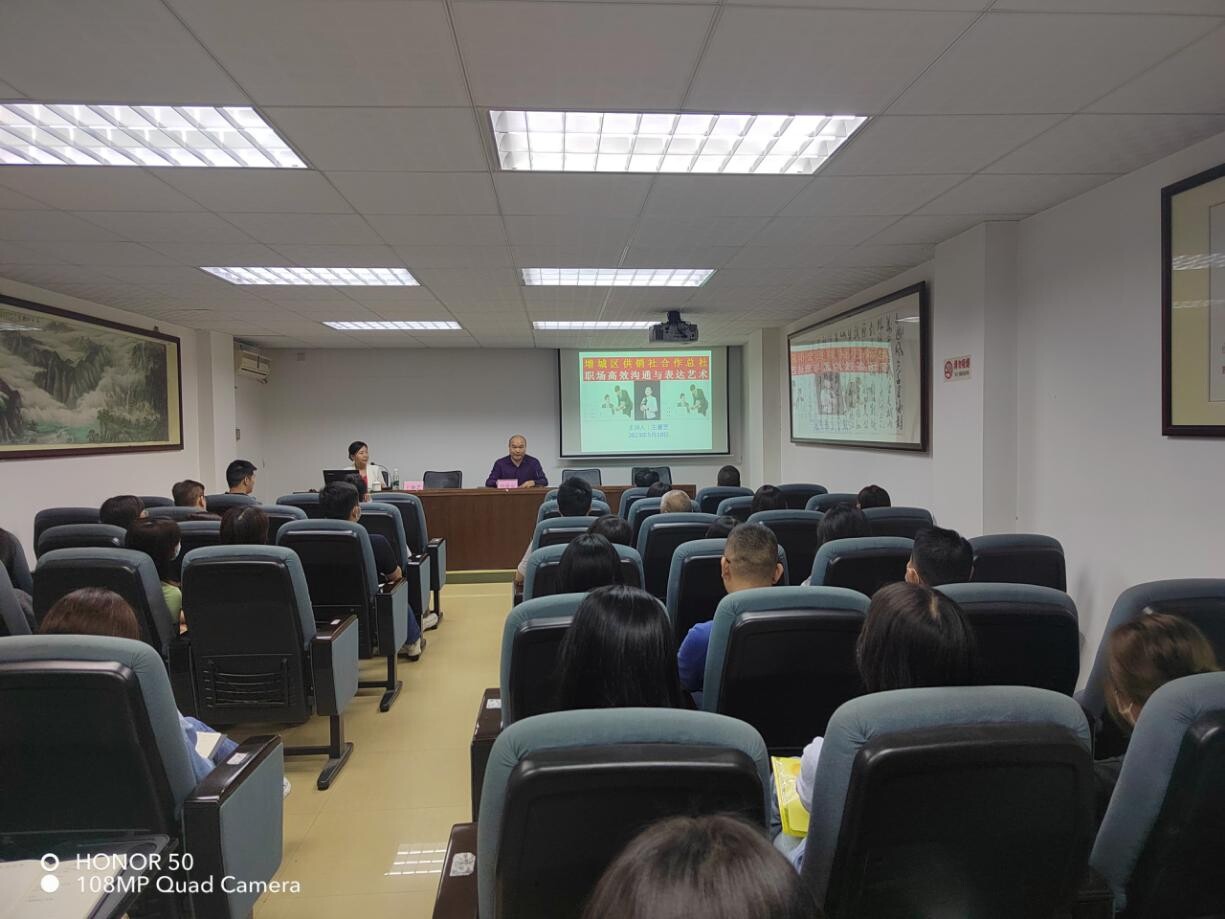 为进一步提高职工综合素质,提升系统整体形象,丰富职工群众生活,5月10日下午,增城区供销合作总社工会开展职场高效率沟通与表达艺术培训班,邀请广东省委宣传部精神文明办礼仪讲师团王春芝讲师进行授课。区供销社机关工会会员、所属各企业工会会员共50人参加培训。