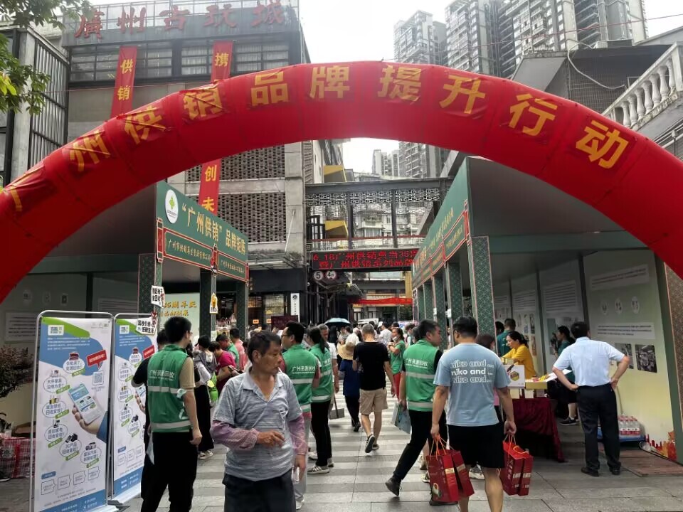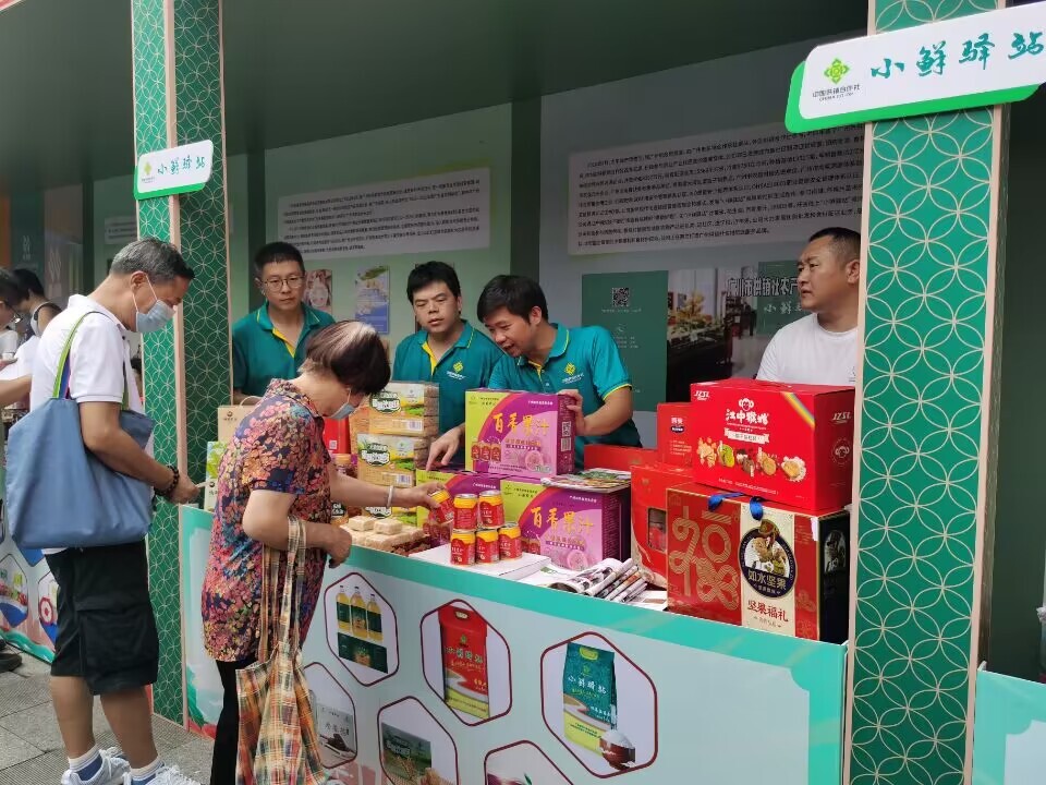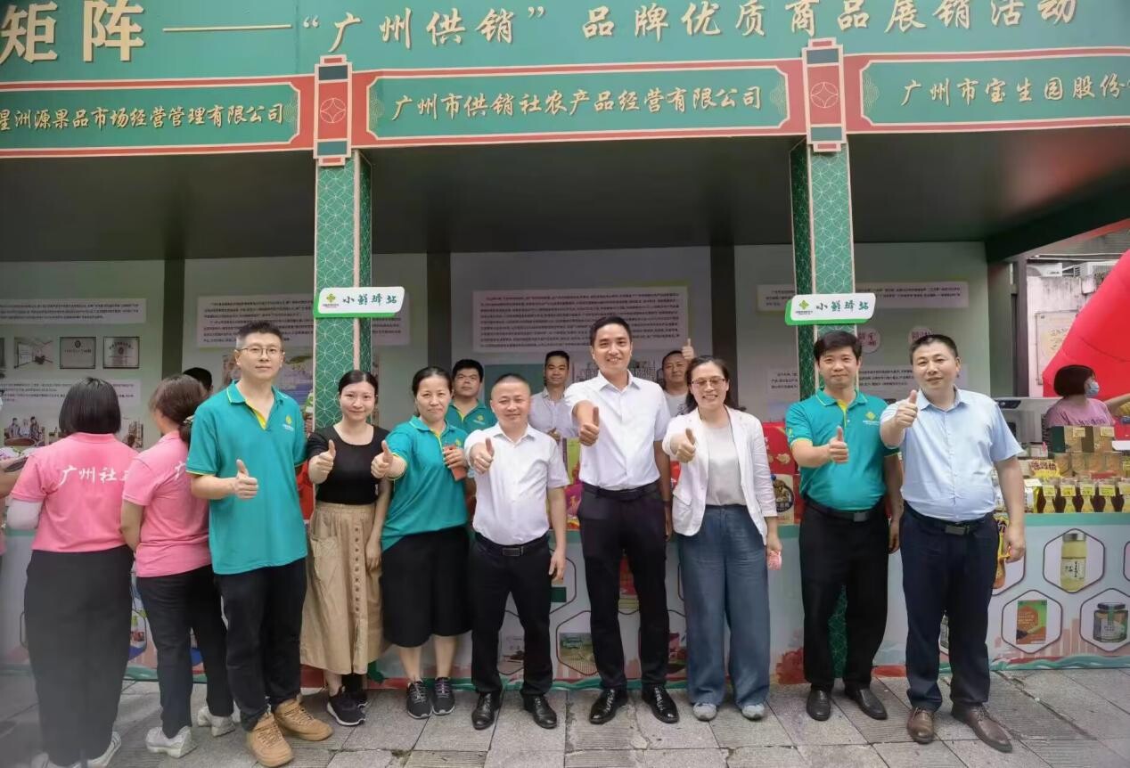 6月18日,在广州荔枝湾畔旁的广州古玩城举行广州供销典当35周年庆暨广州供销系列联展活动,广州市供销社农产品经营有限公司及12家社有企业在活动现场设置了展位,在“广州供销”品牌展示区,农产品公司“小鲜驿站”展区有免费品尝的自有品牌百香果汁、沙琪玛,工作人员向前来的市民推荐了“小鲜驿站”自有品牌花生油、香菇、木耳等“供销好物”产品,广受顾客好评。