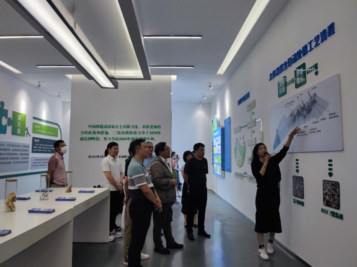 调研组一行先后参观了大件家具处理中心及嘉禾街资源中转站,深入了解白云区大件废弃家具收运处理项目及再生资源回收体系建设工作经验和项目模式。据悉,作为区垃圾分类示范单位,白云区大件家具处理中心是一个集科普宣传和生产处理功能于一体的服务平台,配备全省首台全自动一体化的处理设备及智能化科学化管理的大数据平台,年处理量超过1万吨,资源利用率达100%。而嘉禾街资源中转站则是与属地街道环卫设施合并共建,位于集餐厨处理和资源回收于一体的公共服务设施园区,整个园区占地面积约1600平方米,其中资源中转站占地500平方米,自2022年9月运营以来,纸皮、塑料、金属等可回收物的回收量超过800吨,平均每月回收处理约100吨可回收物,已成为嘉禾街居民心中当之无愧的“绿色银行”。