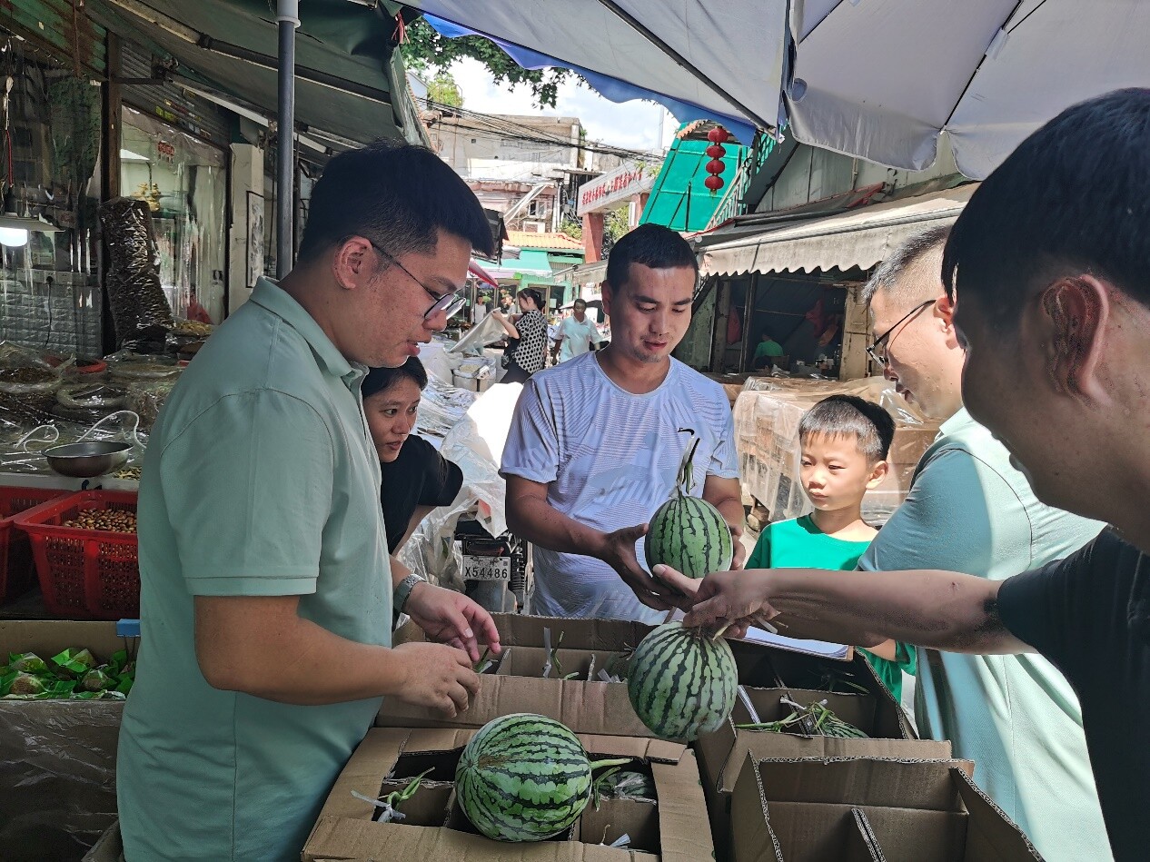 进入小暑节气,天气持续高温,星洲源公司在注重企业自身发展的同时,也密切关注市场客户的健康,及时做好高温天气下对市场客户防暑降温工作。7月5日下午,室外温度高达34℃,星洲源公司组织职工干部开展“酷暑送西瓜 清凉客户心”活动,为如意果品市场和芳村农批市场客户免费送去西瓜共2000多斤,将公司的关心、关爱传递到市场客户的心中,希望通过这份关怀,让每一位客户都能在高温酷暑季节里感受到丝丝“清凉”,激励大家在欣欣向荣的事业奋斗中不断迸发坚定向上的昂扬激情。