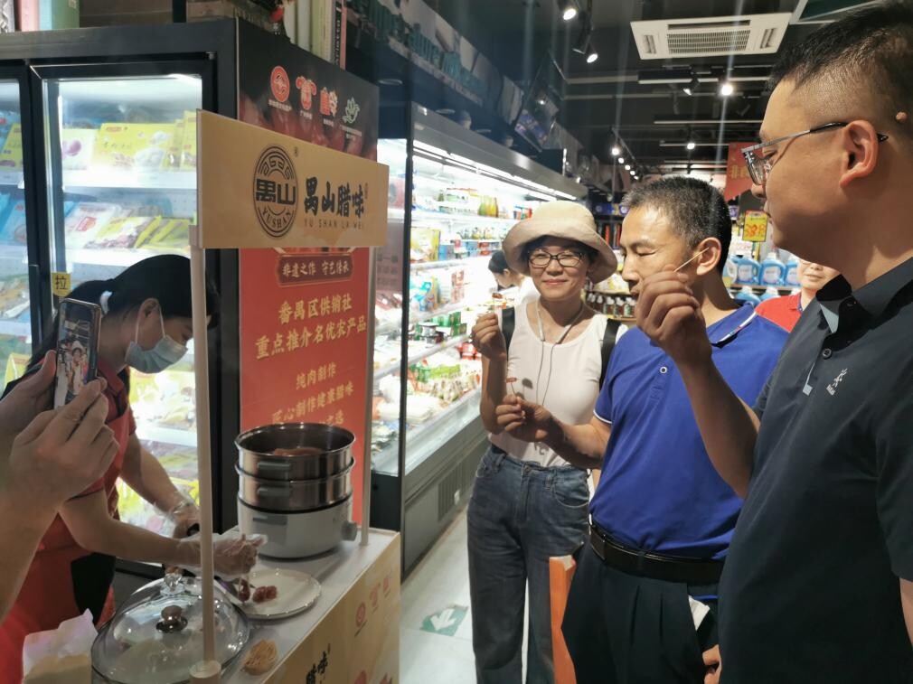 走访交流结束后,禺山腊味与市社农产品经营公司签订产销合作协议,小鲜驿站在门店内设立了禺山腊味产品展销专区。展销摊柜前,来往的顾客不时驻足端详,饶有兴趣地试吃各类熟制后的腊味,秉承古法制作的腊味,肥不腻口,色香俱佳,受到顾客们的一致好评,不少顾客热情选购。
