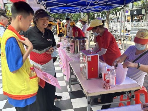 本次活动积极动员社区志愿者、亲子家庭以及社区青年力量,利用“线上+线下”方式,以发动居民认领公益甜品的创新形式,为社区慈善基金筹集善款,活动开始前一晚上,线上已累计留言认捐了50碗糖水,由社区公益骑手与社工统一配送。活动当天,惠爱社带头发动青年力量,组织社区青少年志愿者担任公益甜品宣传大使,鼓励他们克服害羞,鼓起勇气,积极向居民介绍慈善项目,引导居民奉献爱心。有了青春力量的加持,社区慈善工作更加充满朝气。