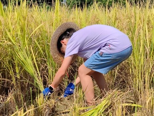 7月15日,暑假第一期“稻田艺术家”亲子农耕体验活动出动,7个家庭在广州市级名村黄埔区迳下村学习自然知识、体验农耕乐趣、手工彩绘。早晨的迳下村风景优美,金色的稻谷已经可以收割。“锄禾日当午,汗滴禾下土”,供销社的社工们带领孩子们收割水稻;孩子们来到助农中心参与稻草人DIY彩绘活动,用颜料为稻草人描绘上斑斓的色彩和有趣的图案。当孩子们捧着自己割下的水稻时,脸上都洋溢着满足的笑容,真正体会到“谁知盘中餐,粒粒皆辛苦“的意义,学会了感恩所有付出劳动的人民。