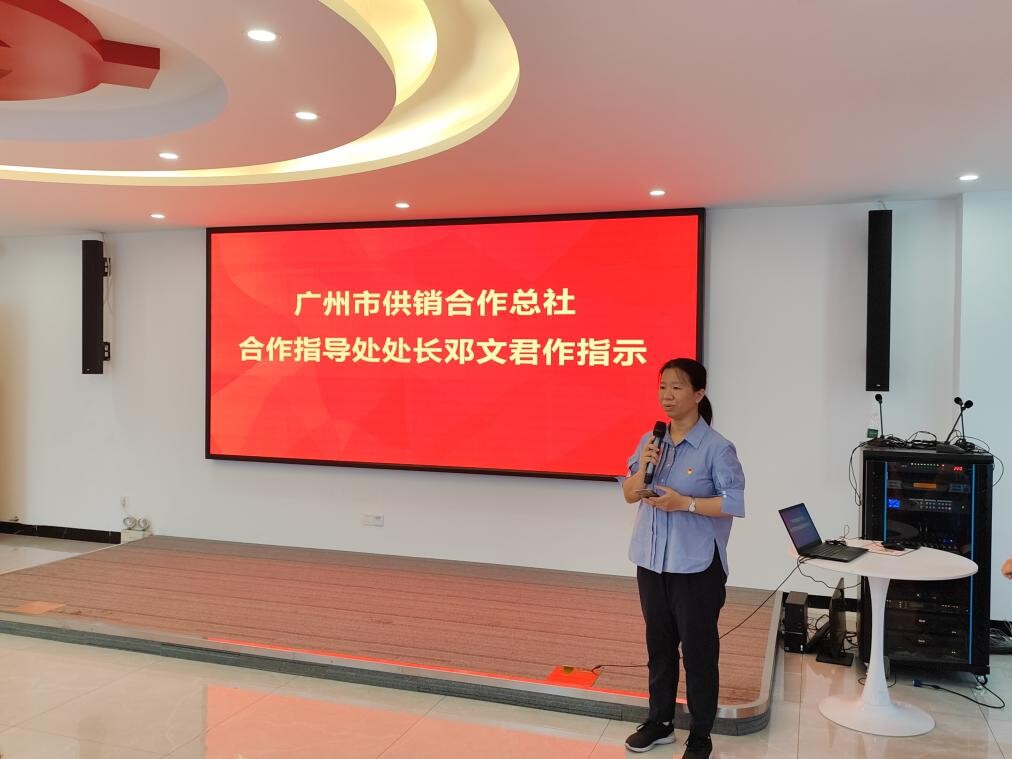 广州市供销合作总社合作指导处邓文君处长对社工站党支部及社工站的发展提出了四点希望:一是“传出去”。党支部成立以后,希望把党的方针政策、执政理念、党的各级代表大会的精神传达到社区和居民;二是“打亮点”。党支部要以街道中心工作和高质量发展为中心,打造党建品牌;三是“落下去”。要把学习党的二十大精神落实到具体的群众需求中去;四是“引进来”。党支部要把街道、工会、民政、企业等社会力量和资源引进来,发挥党组织的平台和作用,积极为居民服务。