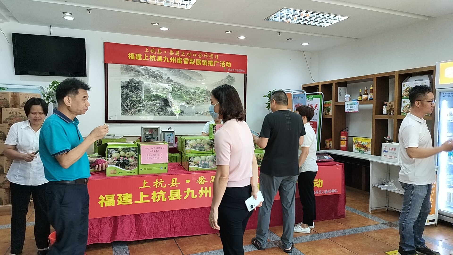 为推动乡村产业高质量发展,助力番禺区对口合作地区农特产品在番禺打开销路,实现农民群众增收致富,全面推进乡村振兴,7月31日至8月1日,组织番禺对口合作地区产品--福建上杭县九洲蜜梨在番禺区政府饭堂开展摆摊设档展销推广活动。