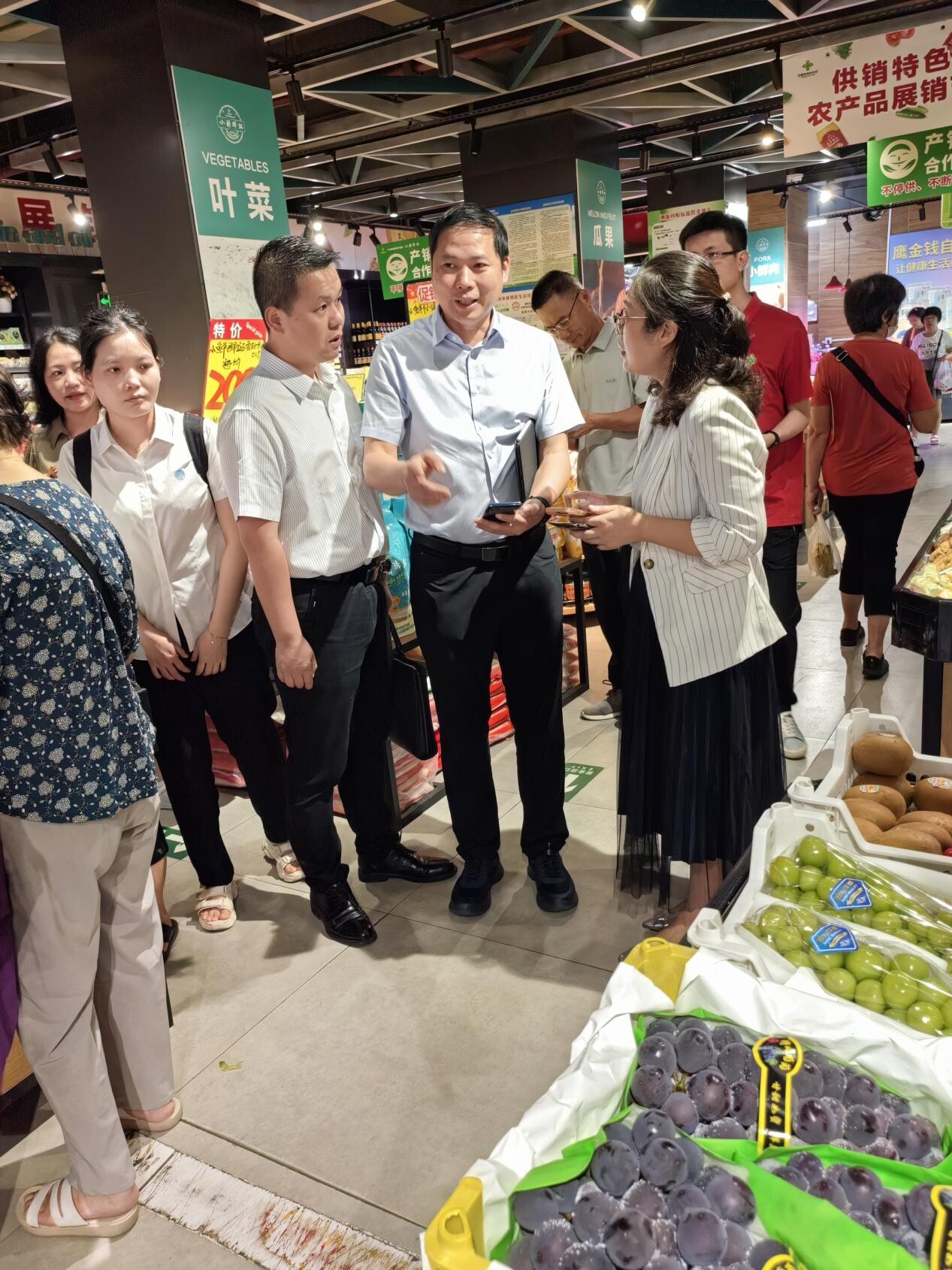 2023年8月11日上午,在广州市供销合作总社汪茂增副主任的陪同下,茂名市供销社党组书记、理事会主任冯照年带领茂名市供销社系统考察组一行到广州市供销社农产品公司“小鲜驿站”龟岗店进行调研。