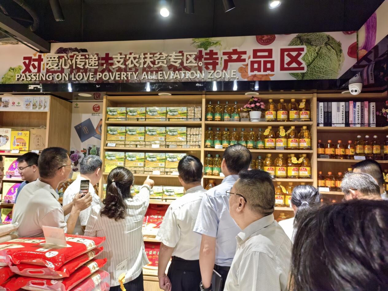 考察组一行参观了解了龟岗店的经营模式,并重点参观了消费帮扶产品专柜、专区,公司党支部书记、执行董事杜平平向考察组介绍了公司在开展消费帮扶、产销对接、832平台销售方面的经验和做法,考察组对公司开展消费帮扶的模式、形式表示了浓厚的兴趣,表示对茂名市供销社有很好的借鉴作用,杜平平书记还向考察组介绍了公司上半年与茂名供销社合作社系统开展荔枝产销对接销售的情况。双方还就两地供销社下一步的合作发展等开展了交流,表示愿意共同努力推动茂名特色农产品通过广州市场辐射粤港澳大湾区。