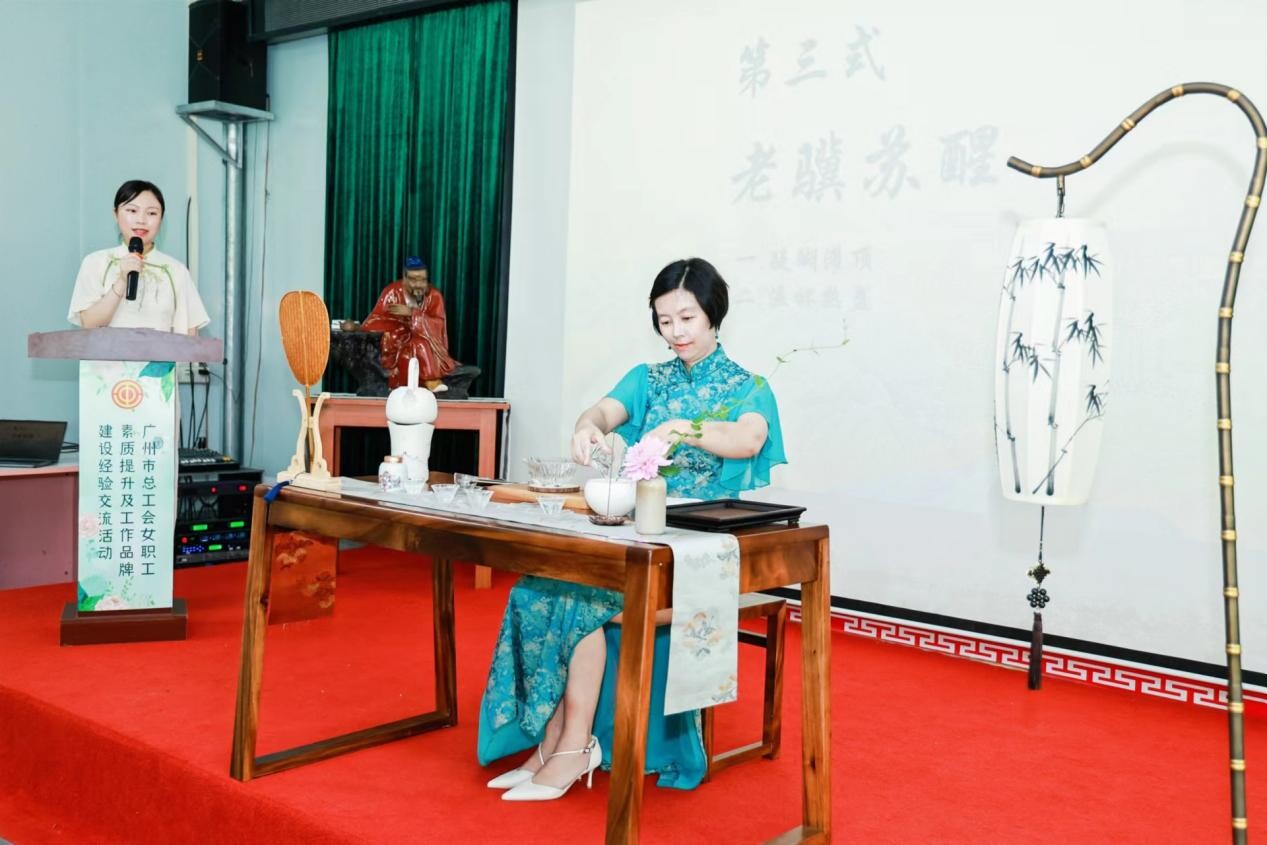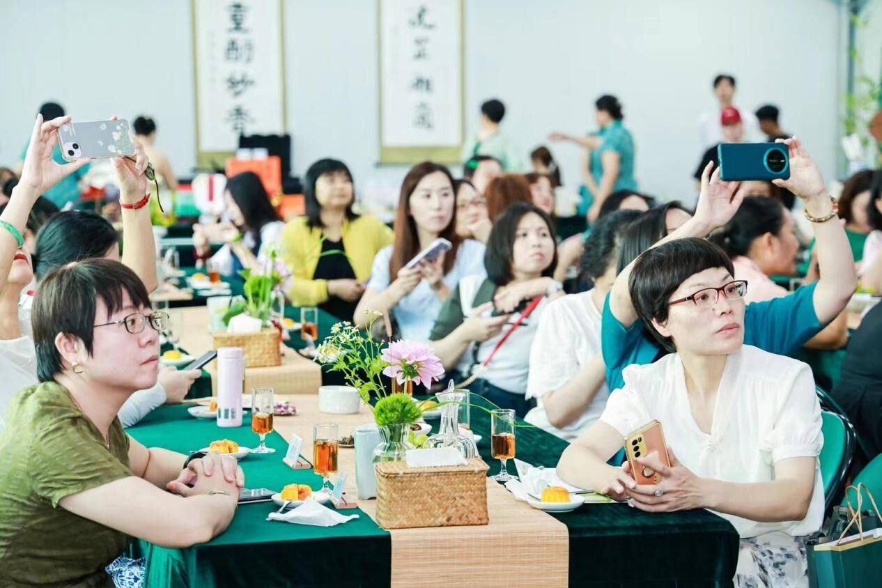 宝生园公司生茂泰茶艺表演团队精心设计,让广州供销农场会议室呈现“乡野雅舍·宁静清雅”主题氛围,在“非遗传统文化展示与体验”环节,以阳山瑶族绿茶为媒介,经茶艺师行茶仪轨的高雅演绎,嘉宾们在品茗的间隙,伴着高山流水式的古韵音乐,沉浸式领略茶的色、香、味、形、韵营造出的清净明澈心境。