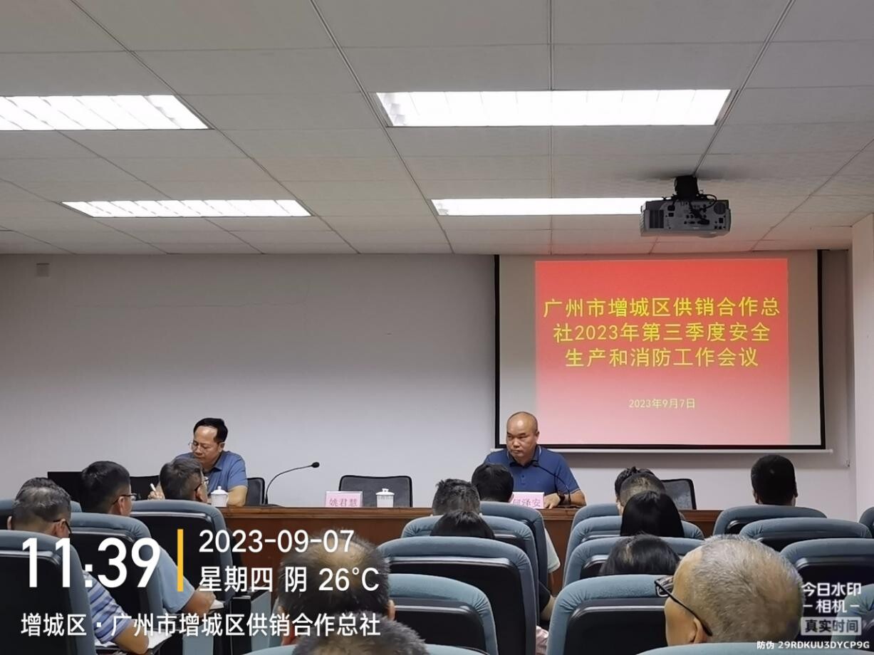 9月7日下午,增城区供销社召开2023年第三季度安全生产和消防工作会议,深入学习贯彻广东省、广州市、增城区有关安全生产和消防工作文件精神,传达市领导在全市安全生产和消防工作会议上讲话的重要精神,全面总结全系统第二季度安全生产和消防工作情况,分析工作存在的主要问题,部署落实国务院安委会安全生产十五条硬措施、省安全生产65条具体措施以及第三季度安全生产和消防工作任务和措施。来自增城区供销社系统各企业第一负责人以及安全生产负责人等共67人参加会议。