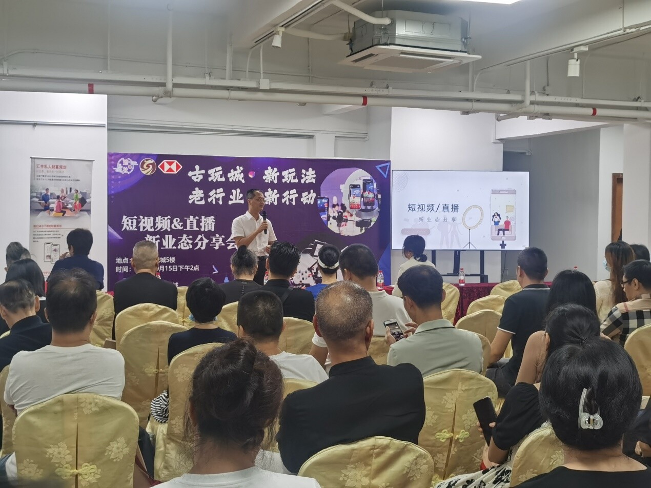 9月15日,广州古玩城联合她社文化公司、汇丰银行财富规划在五楼多功能厅举办短视频直播分享会。