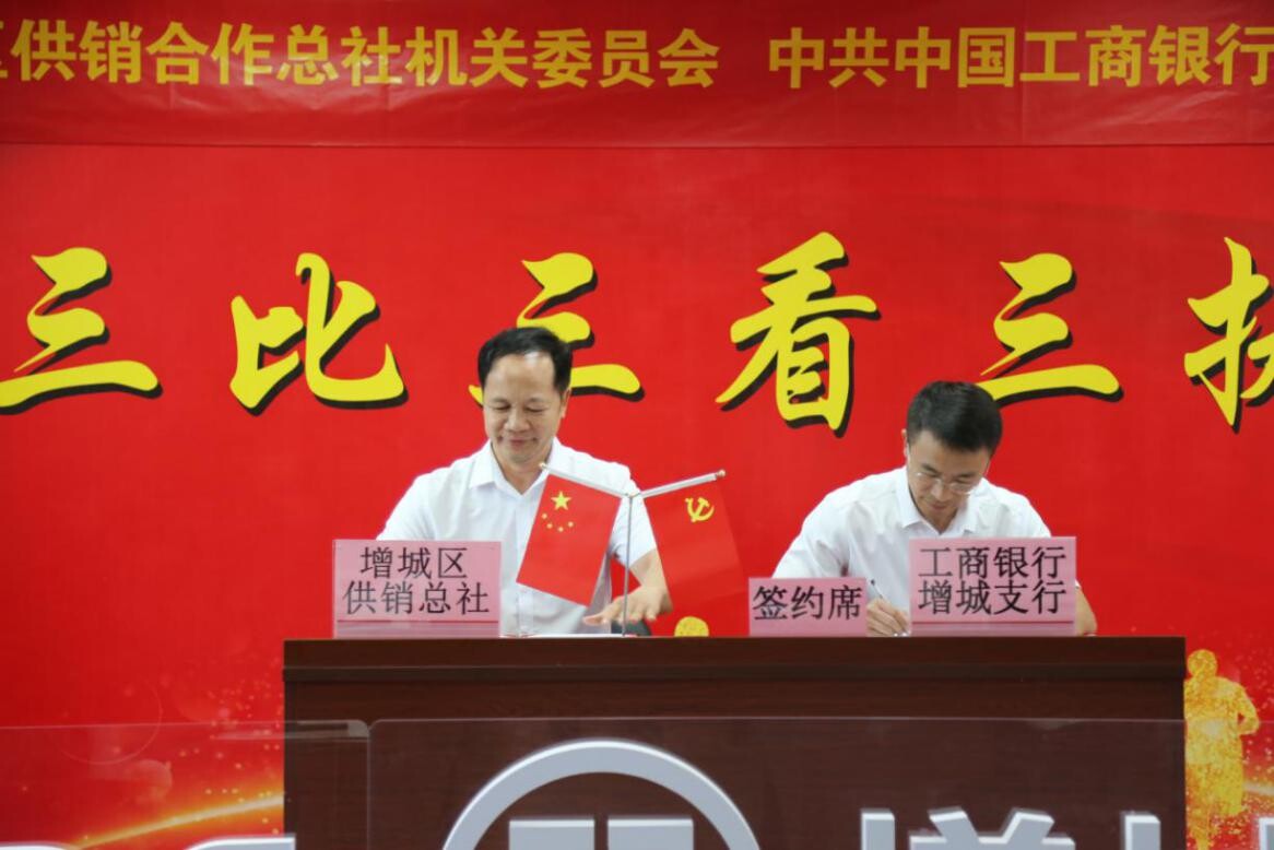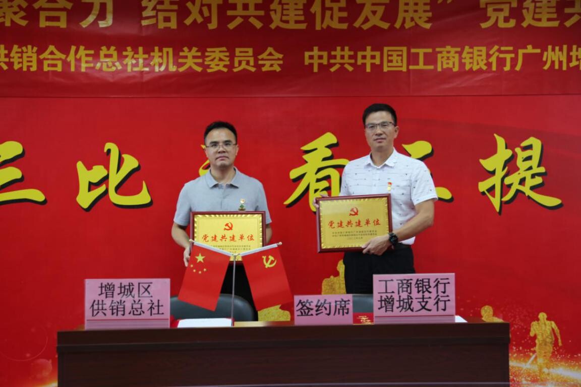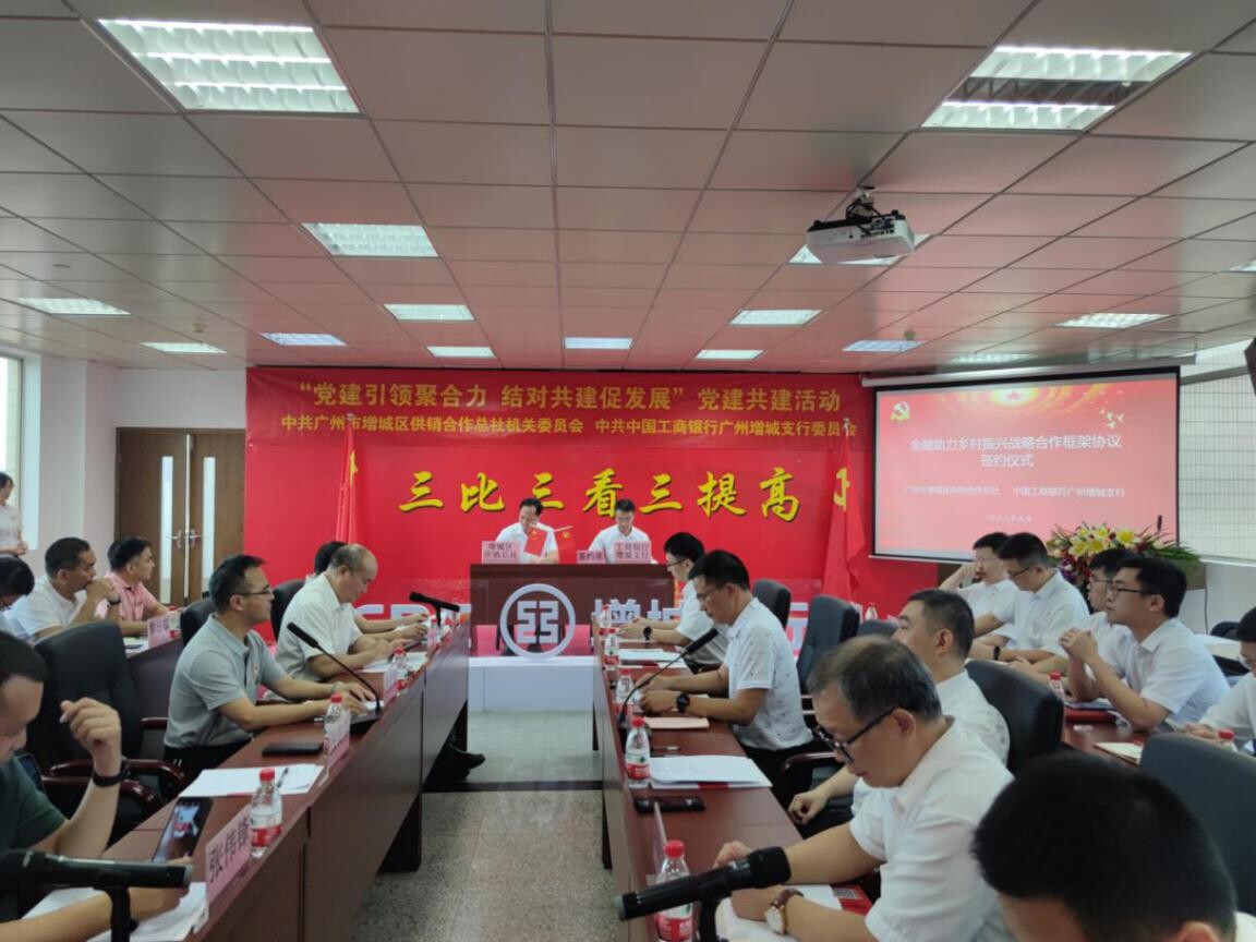 9月15日,广州市增城区供销合作总社机关党委与工商银行广州增城支行党委举行“党建引领聚合力 结对共建促发展”党建结对共建主题活动,双方聚焦服务“三农”职责使命,坚持“三农”金融需求导向,党建引领搭建银企合作桥梁,部门联动全力赋能乡村振兴,更好满足农业农村现代化发展的多样化、多层次金融需求,结对共建助力乡村振兴。工商银行广州增城支行领导班子成员、相关部门负责人,增城区供销合作总社领导班子成员、相关科室负责人及所属各企业负责人等40多人参加活动。