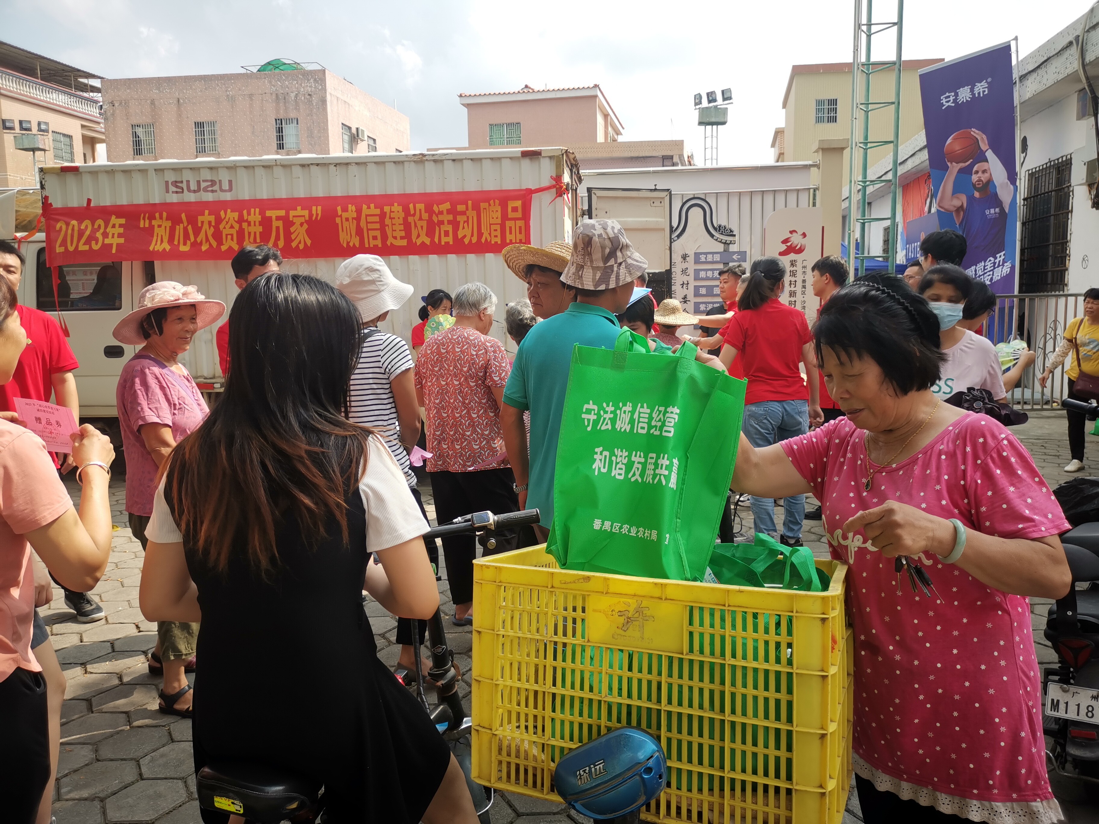 近年来,番禺区供销社系统每年定期举办“放心农资进万家”诚信建设活动,旨在开展科学安全使用农药化肥现场咨询服务,免费为农民提供安全高质的肥料、种子,为农民提供放心的农资商品和优质服务搭好平台,让农村农民与农资经营店及有关职能部门面对面零距离进行农资信息交流,让假劣农资不流向基地,不流向农户,帮助农民提高种植技术,实现产量、质量的提高,促进农业增效、农民增收,为全面推进乡村振兴贡献力量。