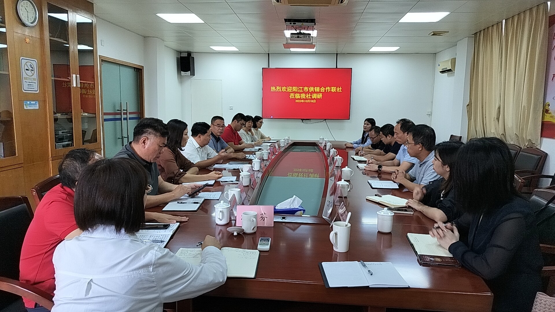 10月18日,阳江市供销合作联社党组书记、理事会主任杨绿超一行8人到番禺区供销联社调研再生资源回收、农产品直供配送及销售、直属企业管理方面的经验和做法。区供销联社领导班子、相关科室负责人及沙湾供销社主任等参加调研。