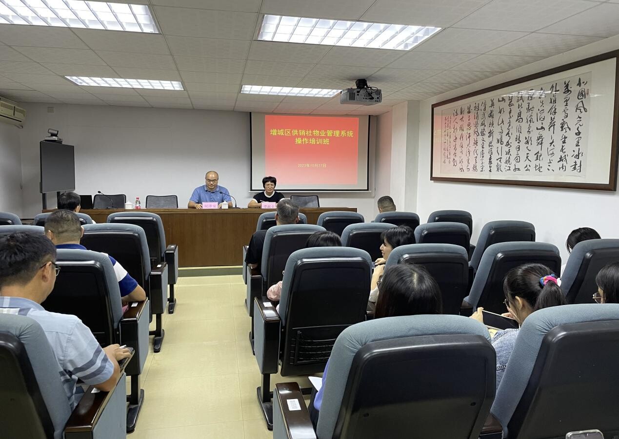 10月27日下午,增城区供销社举办物业管理系统操作培训班,深入推进“增城区供销社物业管理系统”建设,实现数字赋能,创新驱动发展,指导各企业熟悉系统、规范操作、提高效率,促进信息技术、数字技术与社有企业经营管理深度融合,以“数字供销”建设提升物业管理数字化、信息化、智能化水平,为全面深化供销社系统综合改革注入新动能。区供销社机关各科室负责人及相关人员,所属各企业主要负责人、资产管理员和安全生产管理员,共48人参加培训。