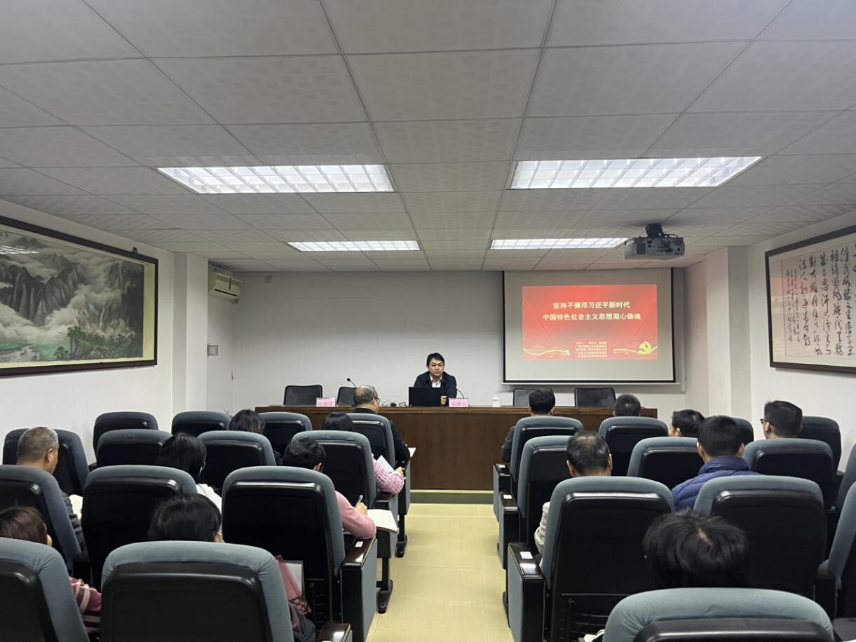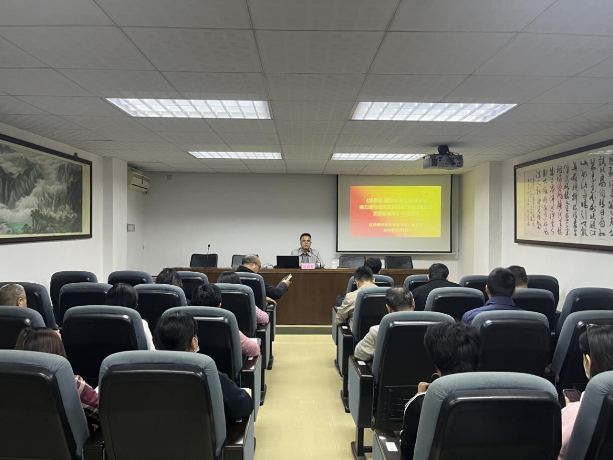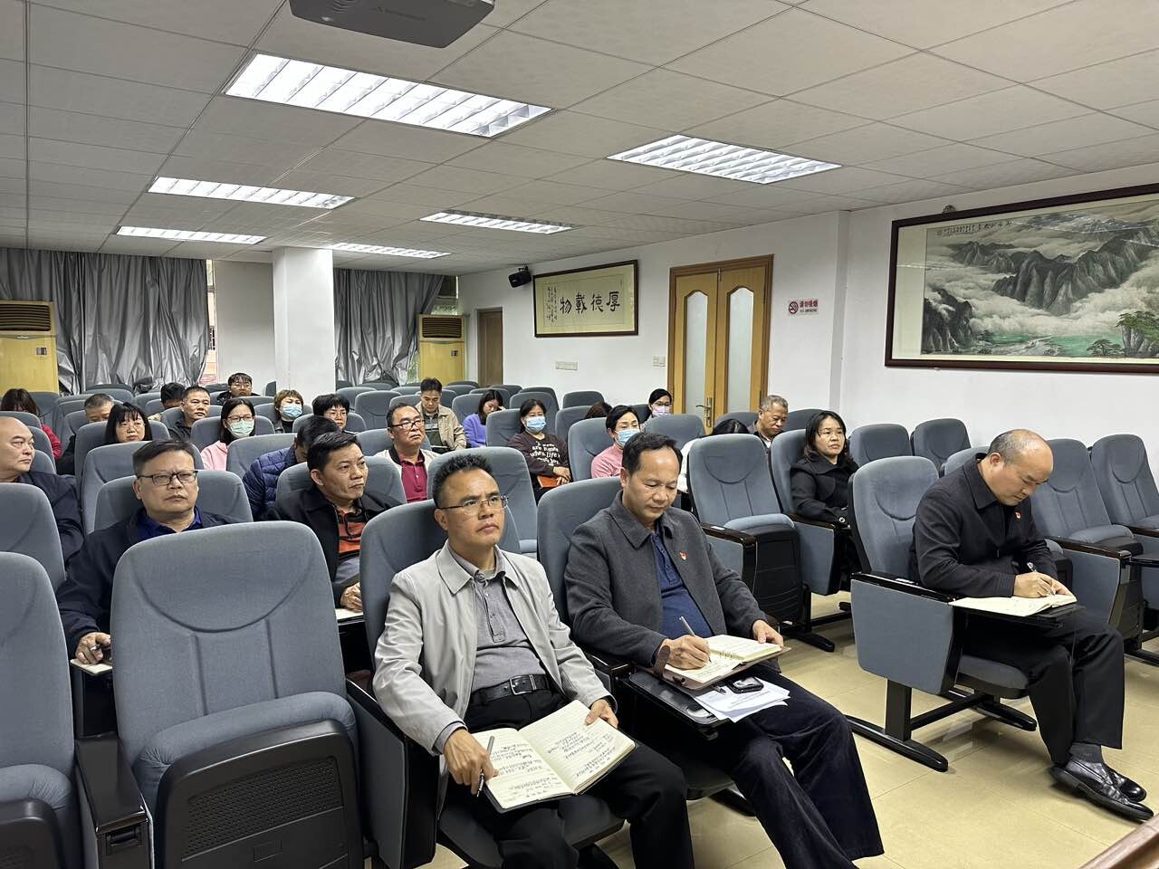 在专题讲座上,谷跃兵副教授作《坚持不懈用习近平新时代中国特色社会主义思想凝心铸魂》专题宣讲,围绕深入学习习近平新时代中国特色社会主义思想,结合党的二十大精神和习近平总书记视察广东重要讲话重要批示精神,生动系统讲解了党的创新理论成果,带领大家学习了解习近平新时代中国特色社会主义思想的提出与发展过程、内容体系与历史地位。通过宣讲,加深系统党员干部职工对习近平新时代中国特色社会主义思想形成发展脉络的认识,不断夯实政治理论基础,提升理论水平,进一步增强政治素养,提高政治能力。