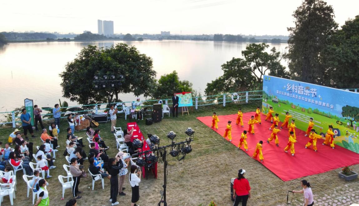 夜幕降临时,乡村音乐节在巴江河特色都市农业带缓缓响起,来自广东白云学院、广州市白云工商技师学院、江高镇新世纪幼儿园的80余名学生,用美妙的旋律和动人的歌声,带领村民进入音乐的世界,享受休闲时光。