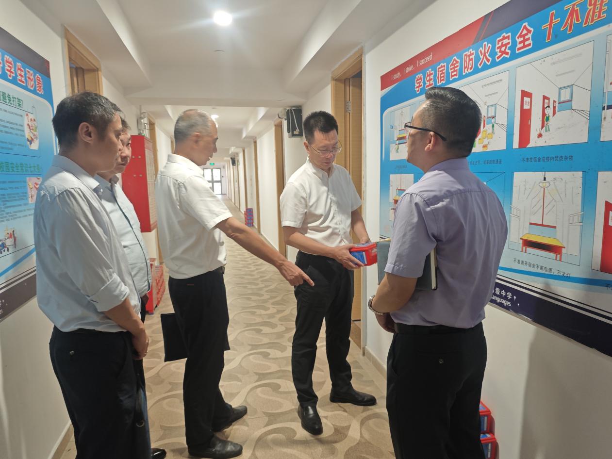 在检查中叶主任要求,要高度重视学校安全工作,切实做好校园安全保障。一是要提高全体人员的安全意识和应急处理能力,做好教职员工及学生的安全培训工作,制定完善的安全应急预案,定期组织演练;二是要加强学校消防设施的日常巡查力度,合理摆放电动自行车停放区的灭火器材,确保灭火器材摆放位置合理,以便发生紧急情况时能及时应对;三是要规范使用应急逃生门,确保逃生门的开启符合安全规范,防止因紧急疏散时出现拥堵或无法逃生的情况;四是要做好国庆期间宣传氛围布置,强化节日期间的值班工作,确保假期安全稳定。